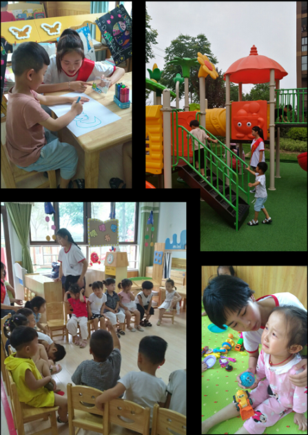 早上8点,韩副主任和学生们准时到达既定地点——徐州幼教集团雨润新城幼儿园,参观交流。幼儿园苏园长热情地接待了一行。她首先带领大家参观了幼儿园,并介绍了生源、师资配备以及教研活动的开展情况等。卫生整洁的园区环境、独具创意的手工摆设、丰富多彩的活动剪影、先进齐全的游戏区域以及温馨雅致的教室环境,给大家带来耳目一新的感受。随后,同学们被分组到不同班级,和老师们一起参加教学,有的指导幼儿画画,有的加入讲故事环节,有的和幼儿一起游戏,有的参与户外活动,更有的想方设法安抚新入园孩子的哭闹情绪……完全融入在课堂中。