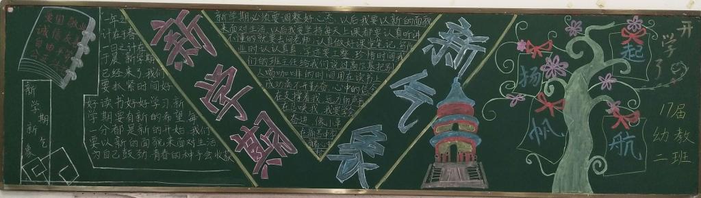 为了端正学风,凝聚集体力量,树立学生优良的思想品德,基础部在九月底开展了“新起点、新征程”为主题的黑板报评比活动,幼儿教育专业所有班级参加评比。