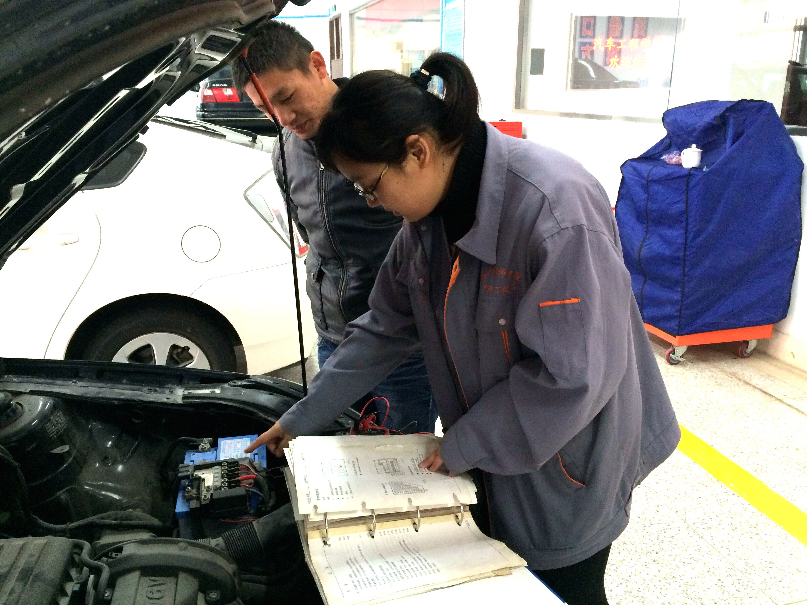 比赛分汽车故障诊断与排除和汽车二级维护两个项目,选用大众朗逸车型,现场设置故障,考查教师们的专业技能水平和应赛能力。比赛现场,参赛教师仔细观察、认真思考、一丝不苟、冷静应对。经过激烈角逐,汽车电气教研室的齐元振老师脱颖而出,拔得头筹。