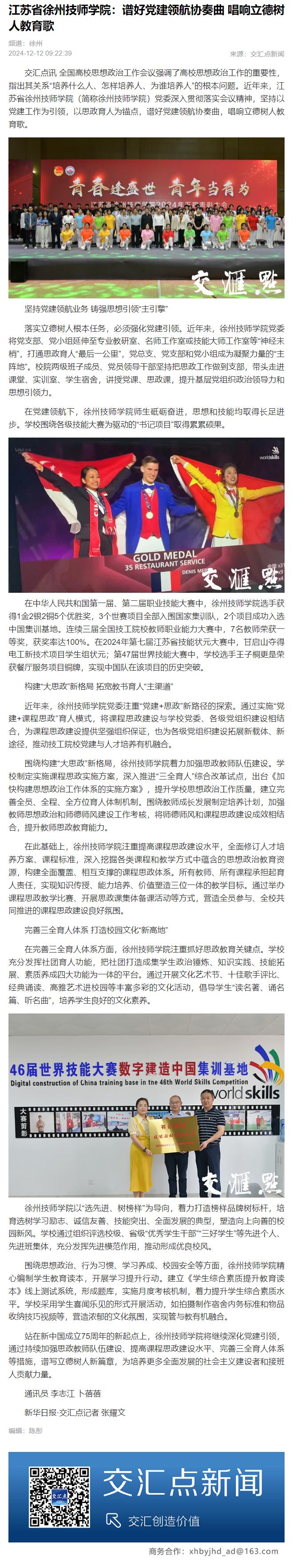 《交汇点新闻》江苏省徐州技师学院:谱好党建领航协奏曲 唱响立德树人教育歌