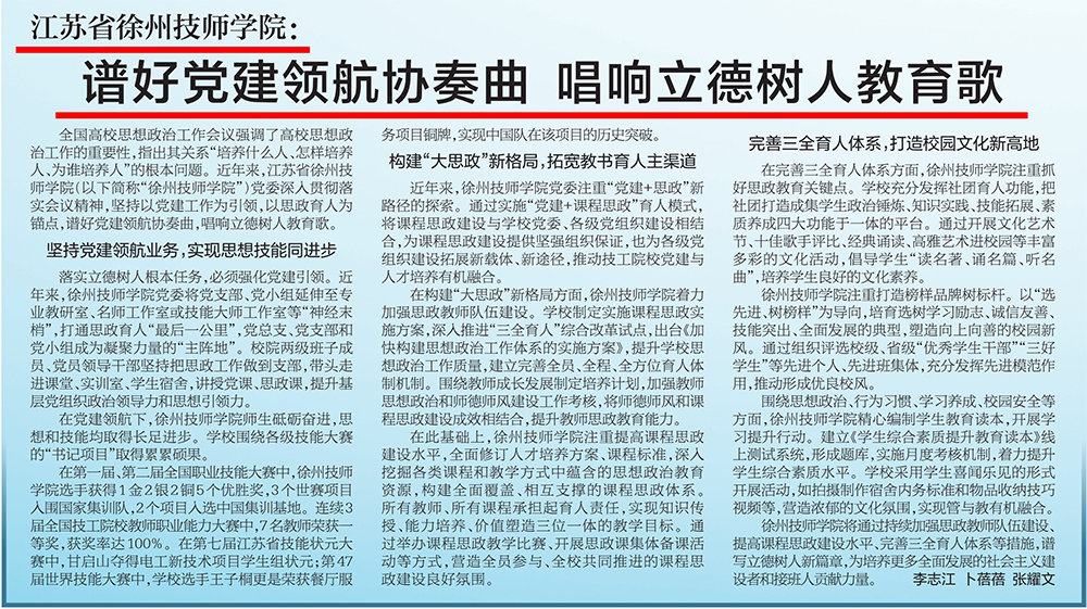 《交汇点新闻》江苏省徐州技师学院:谱好党建领航协奏曲 唱响立德树人教育歌
