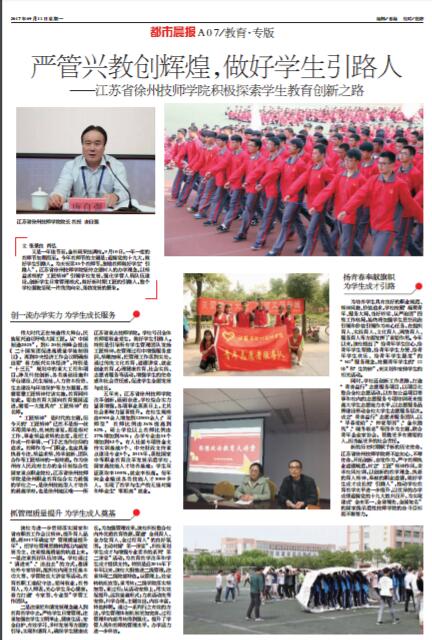 严管兴教创辉煌,做好学生引路人——江苏省徐州技师学院积极探索学生教育创新之路 都市晨报报道