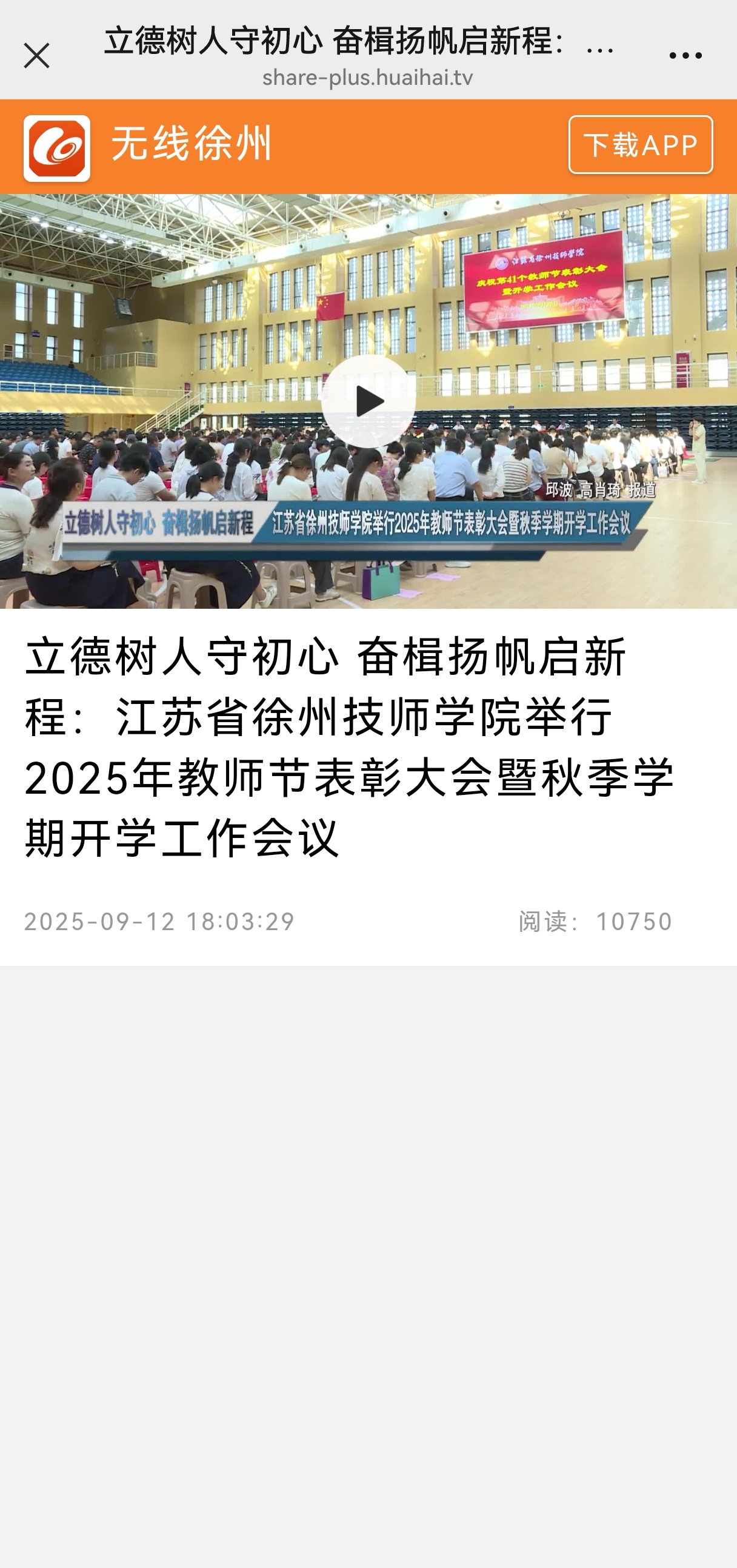 无线徐州:立德树人守初心 奋楫扬帆启新程:江苏省徐州技师学院举行2025年教师节表彰大会暨秋季学期开学工作会议