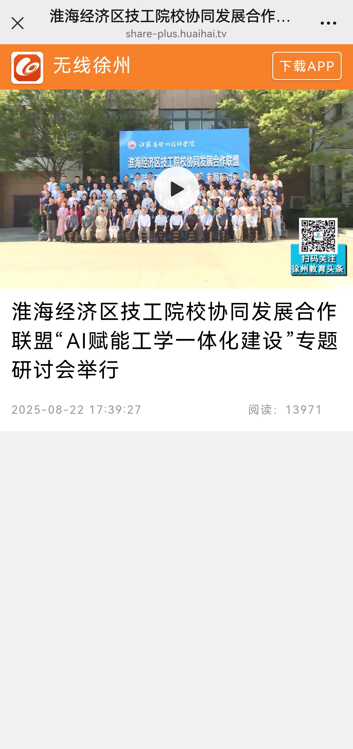 无线徐州:淮海经济区技工院校协同发展合作联盟“AI赋能工学一体化建设”专题研讨会举行