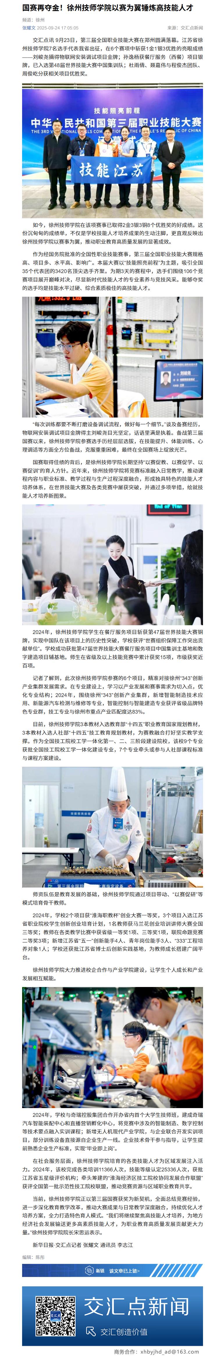 《交汇点新闻》:国赛再夺金!徐州技师学院以赛为翼锤炼高技能人才