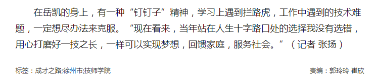 技师榜样 优秀力量③徐州技师学院岳凯:踏实肯干技能强 管理有方“多面手”