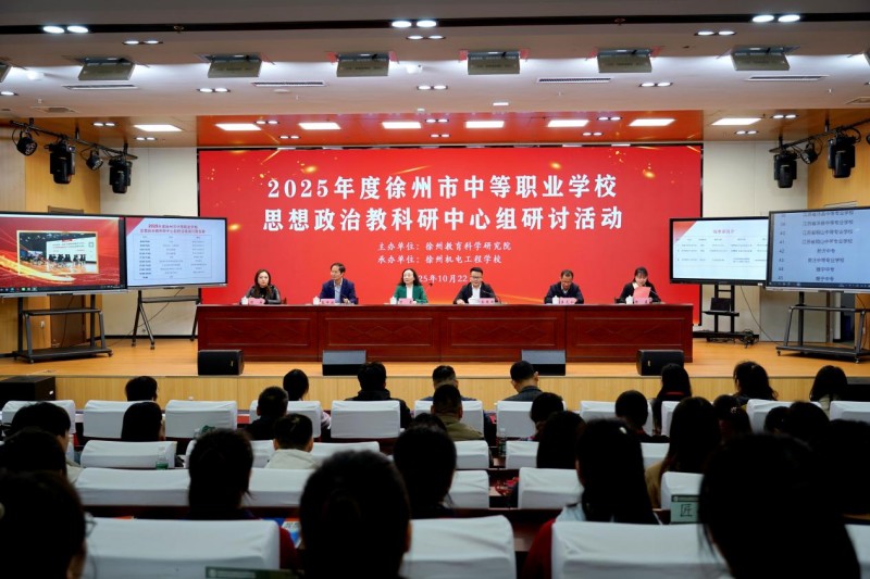 10月22日,2025年度徐州市中等职业学校思想政治教科研中心组研讨活动在徐州机电工程学校举办。我校党委副书记、校长、第六届徐州市职业教育思想政治教科研中心组组长宋思运受邀出席会议并致辞,徐州市教育科学研究院党支部书记、副院长丁蕾,第六届徐州市职业教育思想政治教科研中心组副组长陈晨、秘书长顾丹出席会议,我校马克思主义学院(基础部)院长(主任)潘耀及教师代表和来自全市各职业学校思政教科研中心组成员及骨干教师参加本次研讨活动。