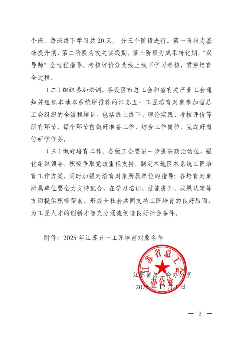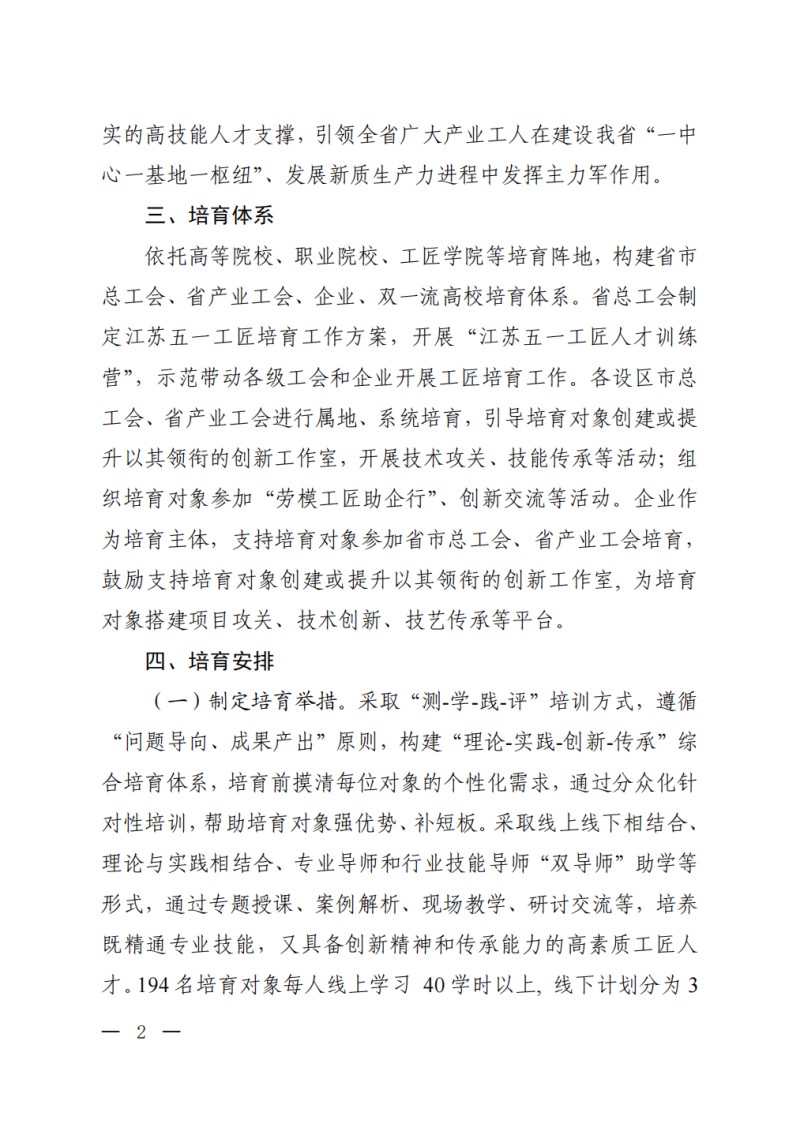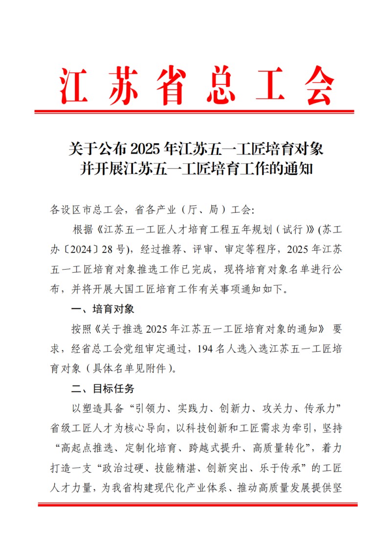 据悉,江苏五一工匠培育对象以塑造具备“引领力、实践力、创新力、攻关力、传承力”省级工匠人才为核心导向,以科技创新和工匠需求为牵引,坚持“高起点推选、定制化培育、跨越式提升、高质量转化”,着力打造一支“政治过硬、技能精湛、创新突出、乐于传承”的工匠人才力量,为江苏省构建现代化产业体系、推动高质量发展提供坚实保障。