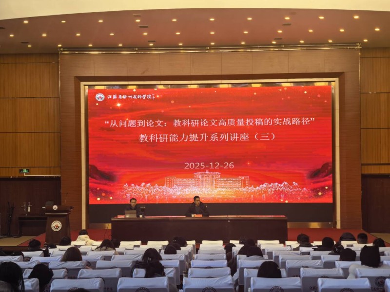 12月26日,我校在报告厅成功举办第三场“教科研能力提升系列讲座”。本次讲座特邀徐州市教科院职成教研室教研员、徐州市首批职教专业带头人李先知担任主讲嘉宾。党委委员、副校长卞波出席活动,教务处工作人员及各二级学院专业教师共同参加。