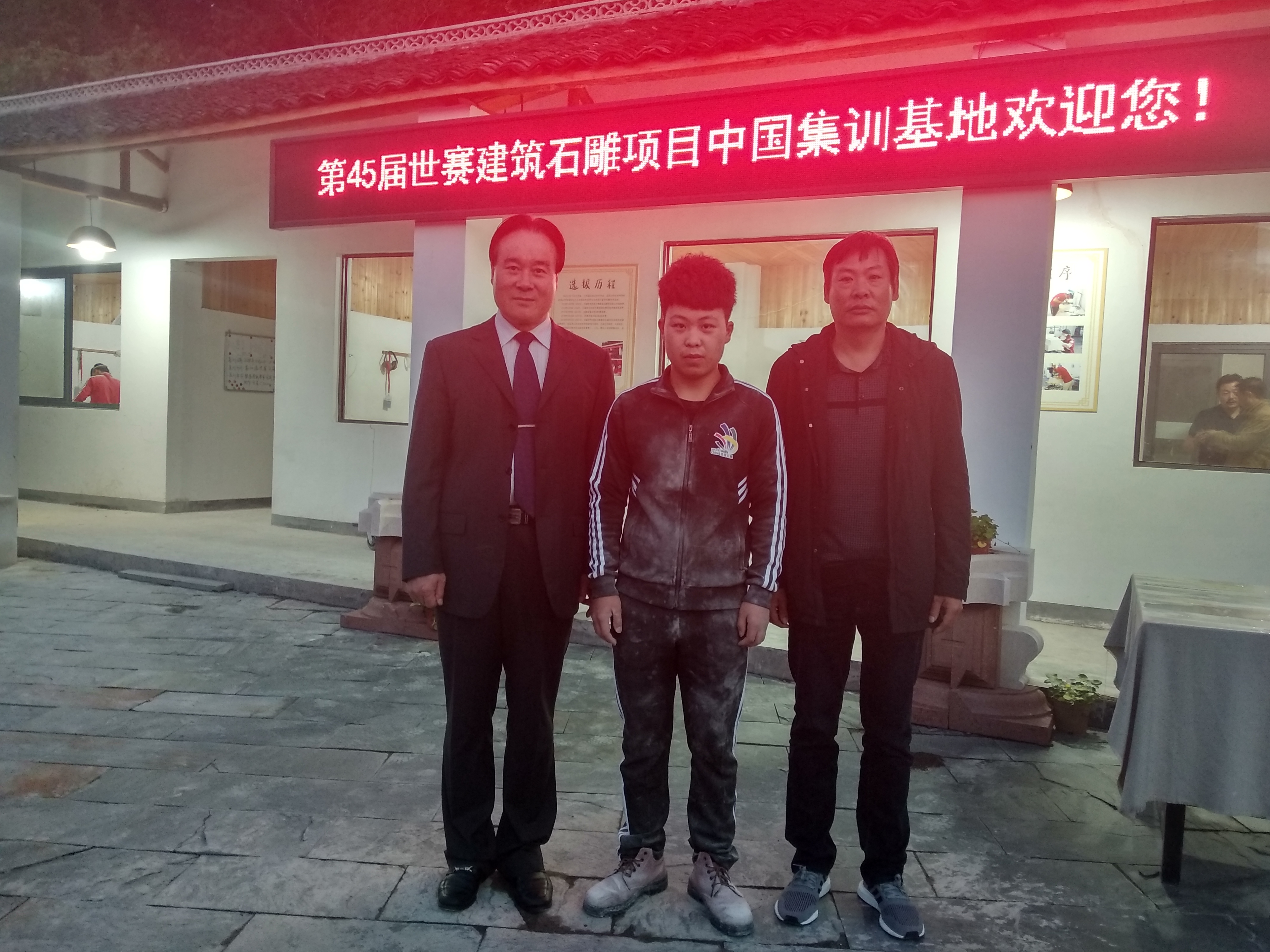 10月23日,院长唐自强、实验实训教学管理中心副主任王来运一行赴黄山看望建筑石雕项目国赛集训选手王欢。