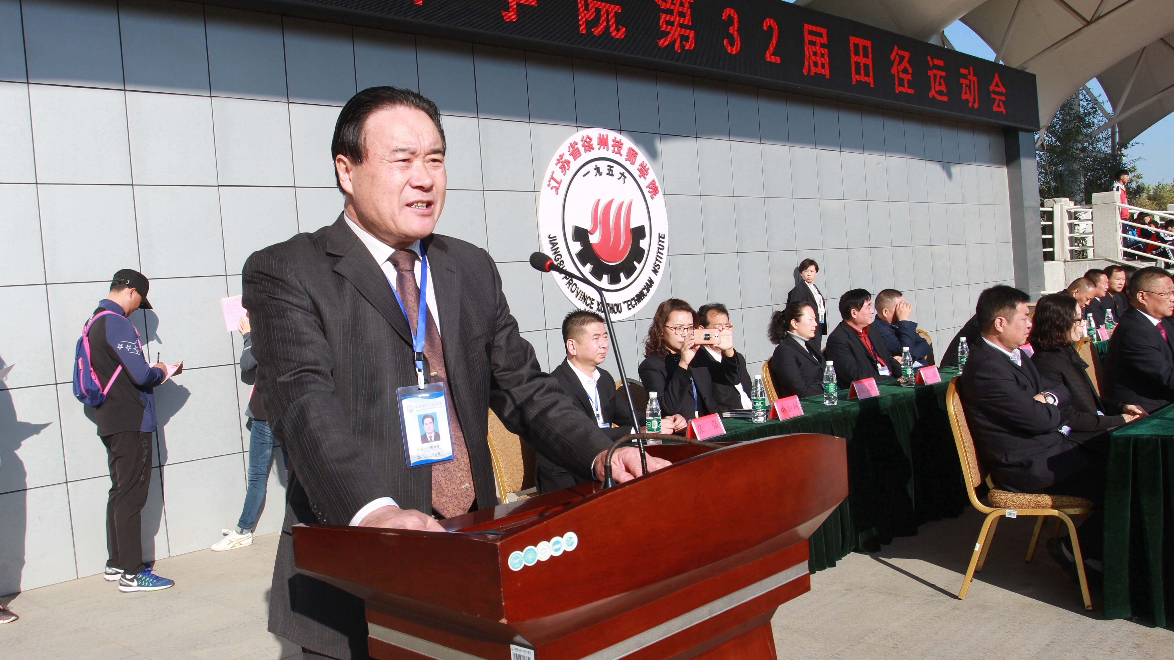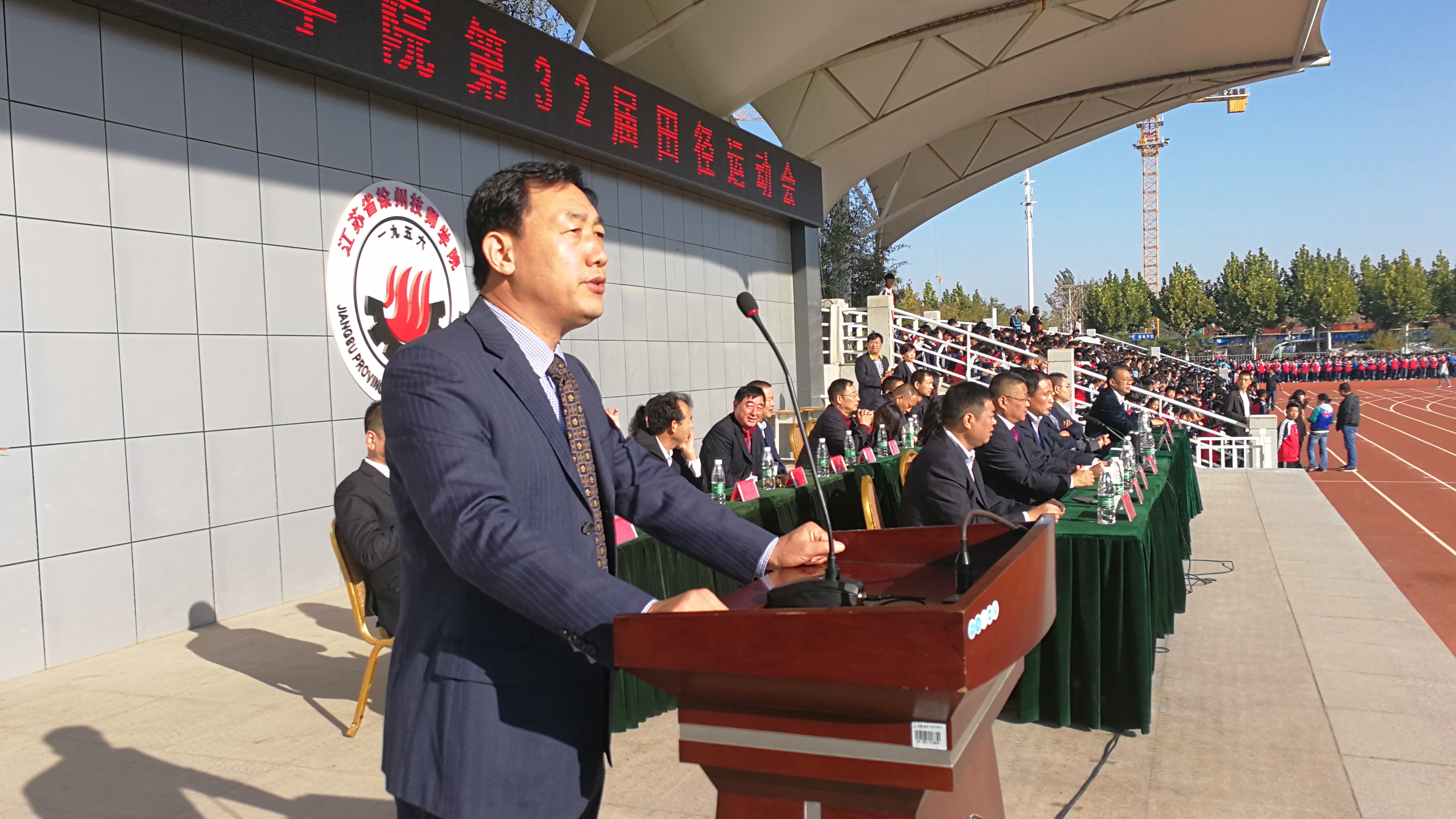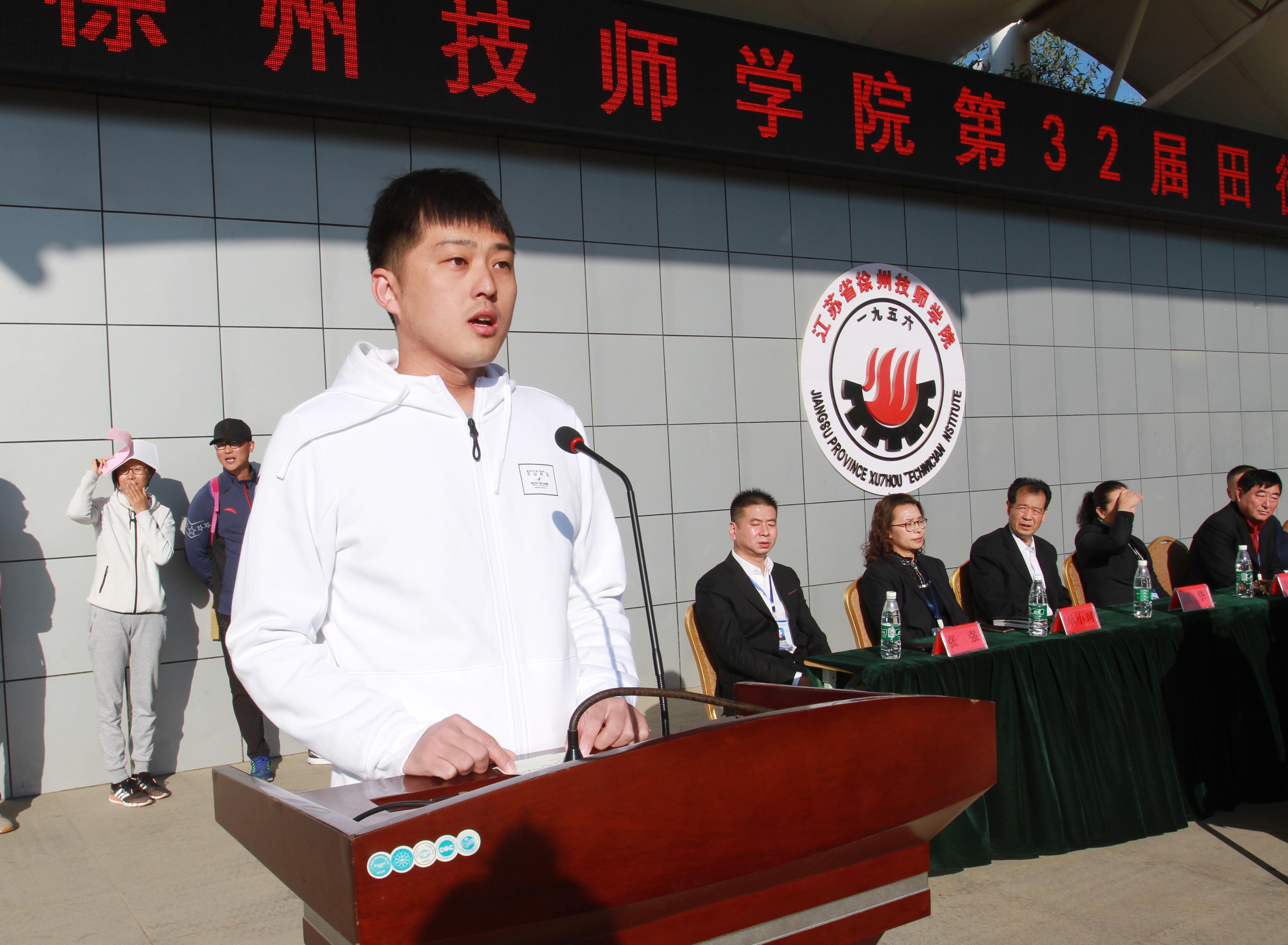 裁判员和运动员代表宣誓后,党委书记朱志杰宣布:江苏省徐州技师学院第32届田径运动会开幕!