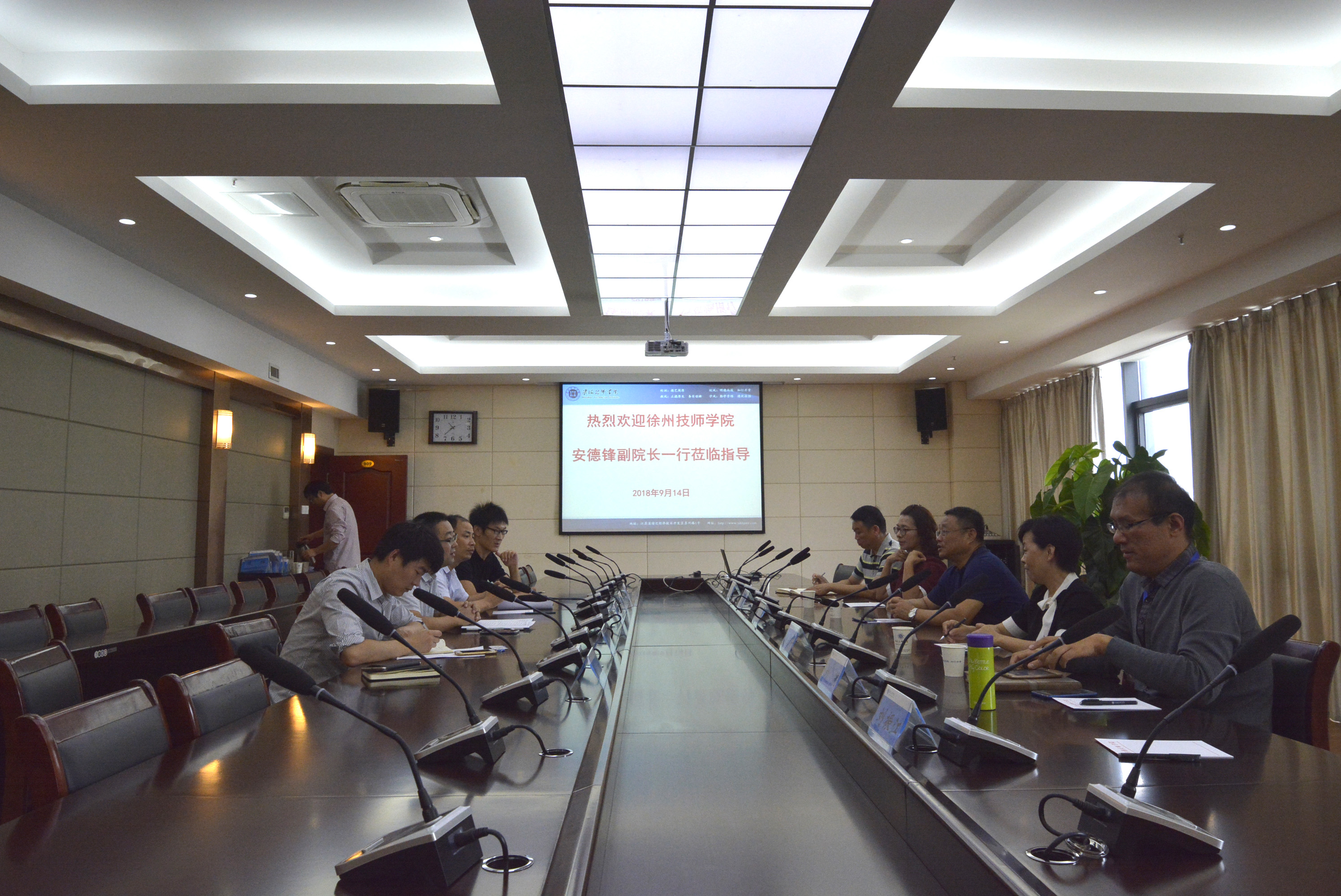 安德锋副院长一行在淮海技师学院副院长李刚的带领下参观了校园和实习车间,并在会议室进行了座谈交流。淮海技师学院学工、团委、就业负责人介绍了相关工作经验,尤其在学生德育教育、常规管理、社团活动、招生就业等方面双方进行了深入磋商,听取了各自的经验和好的做法。此次兄弟院校的学习交流,为我校学生工作的进一步开展提供宝贵的经验。