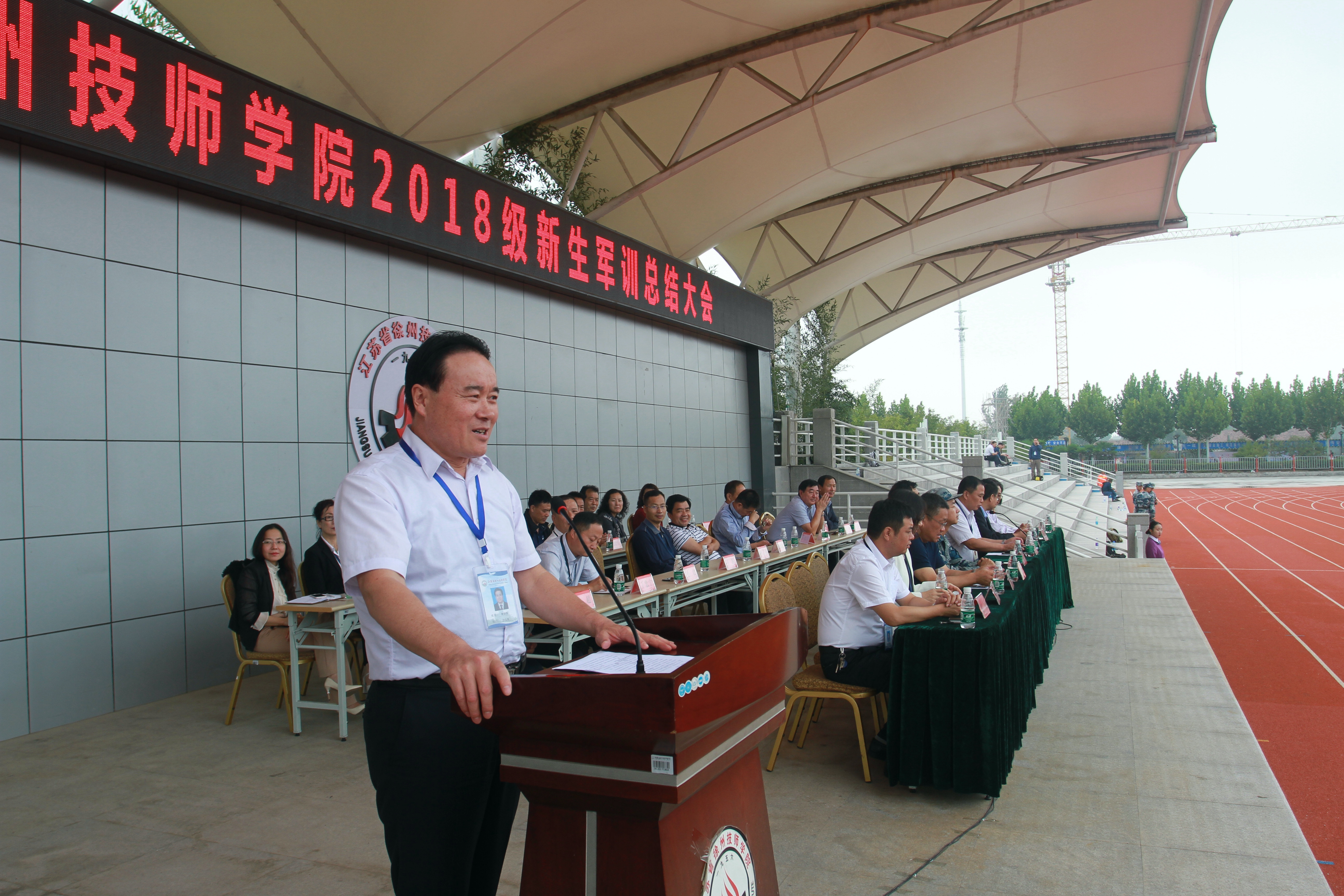 9月20日上午,我校2018级新生军训总结大会在田径运动场隆重举行。党委书记朱志杰,院长唐自强,副书记胡恒庆,副院长安德锋、周青生,各二级院部和职能部门主要负责同志及2018级全体新生与会。会议由胡恒庆副书记主持。
