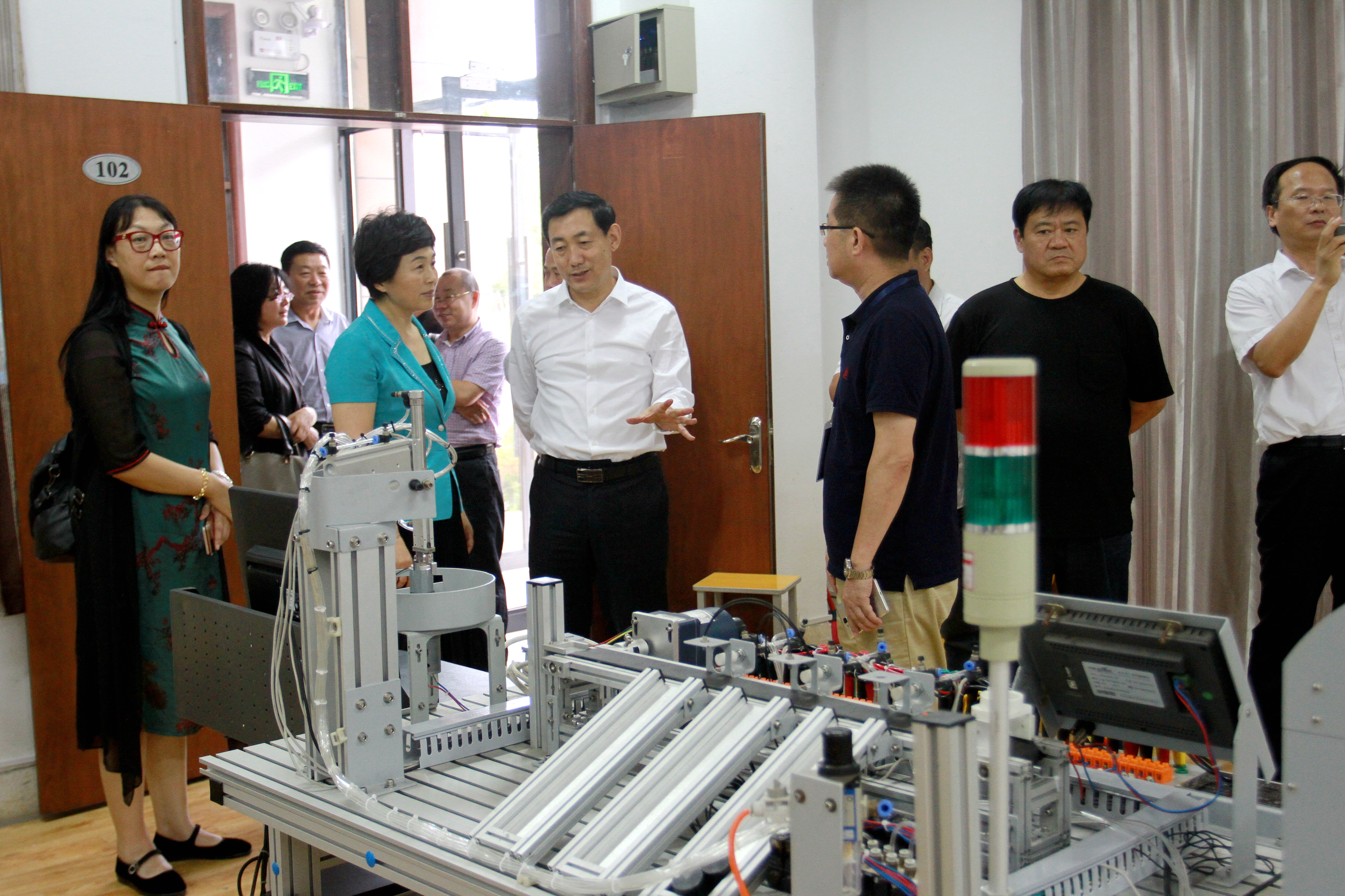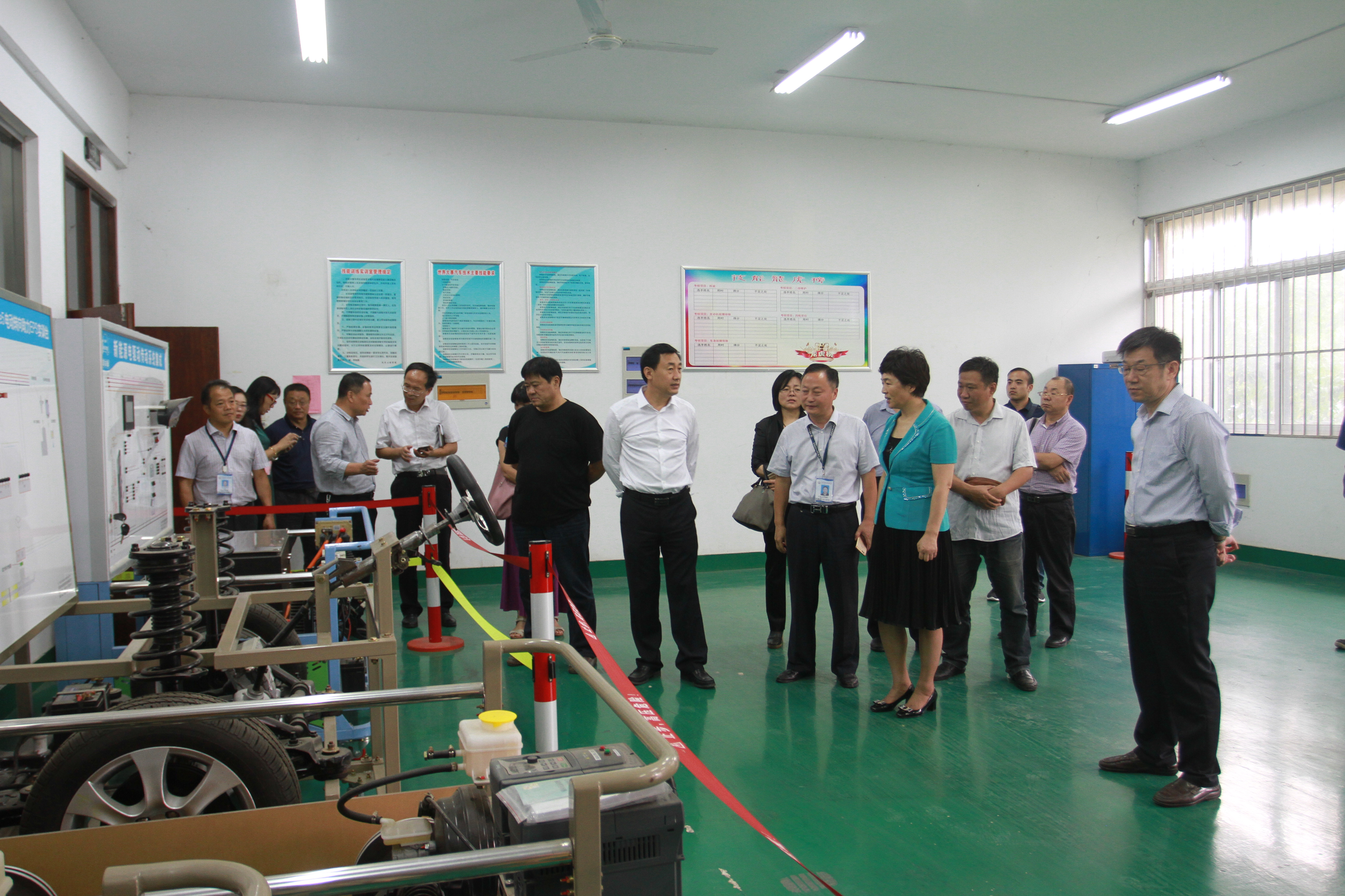 张耀环副主席一行首先在朱志杰书记的陪同下参观考察了我校智能制造中心、轨道交通实训基地、汽车整车实训中心、信息实训基地、航空实训基地,观看了若博微电脑鼠机器人的运行演示,感受了建筑VR体验式安全教育,领略了和谐号列车的风采,品尝了学生亲手制作的糕点,全方位了解了我校专业建设、人才培养、实训基地建设等方面情况。张耀环副主席对学校近年来建设发展取得的成绩给予了高度评价。