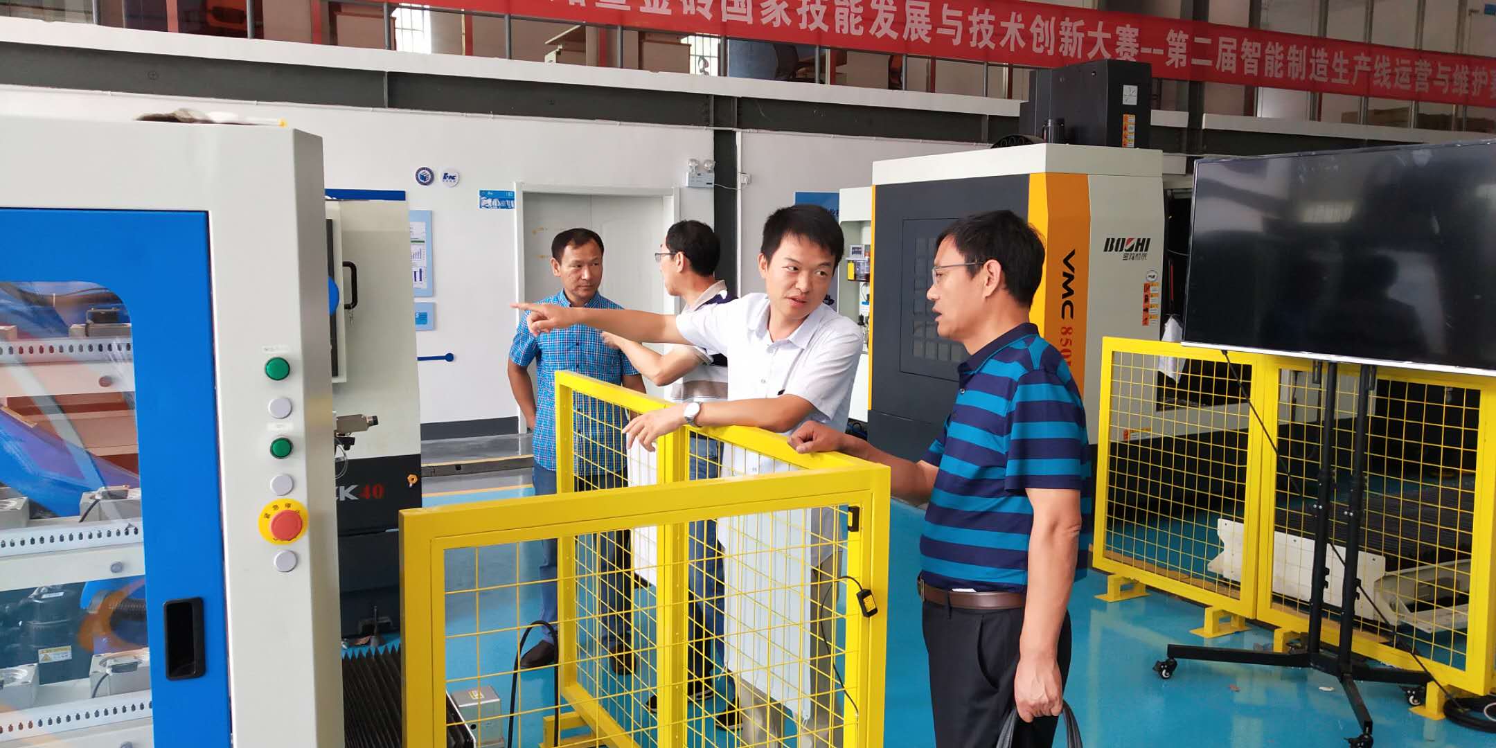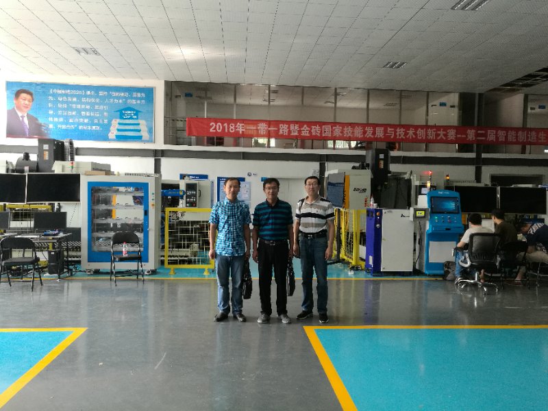 在华中数控教育事业部部长周理、教育事业部华东片区销售总经理程龙、经理张琪的陪同下,刘副院长一行参观了华中数控展示厅,了解了武汉华中数控公司的发展历程及智能工厂的建设情况;考察了华中数控与武汉软件工程学院共建的“工业机器人职业技能鉴定站”、华中科技大学国家数控实训中心,与学校教师就工业机器人等级能力认定、人才培养、教学改革、服务社会等进行了深入的交流。