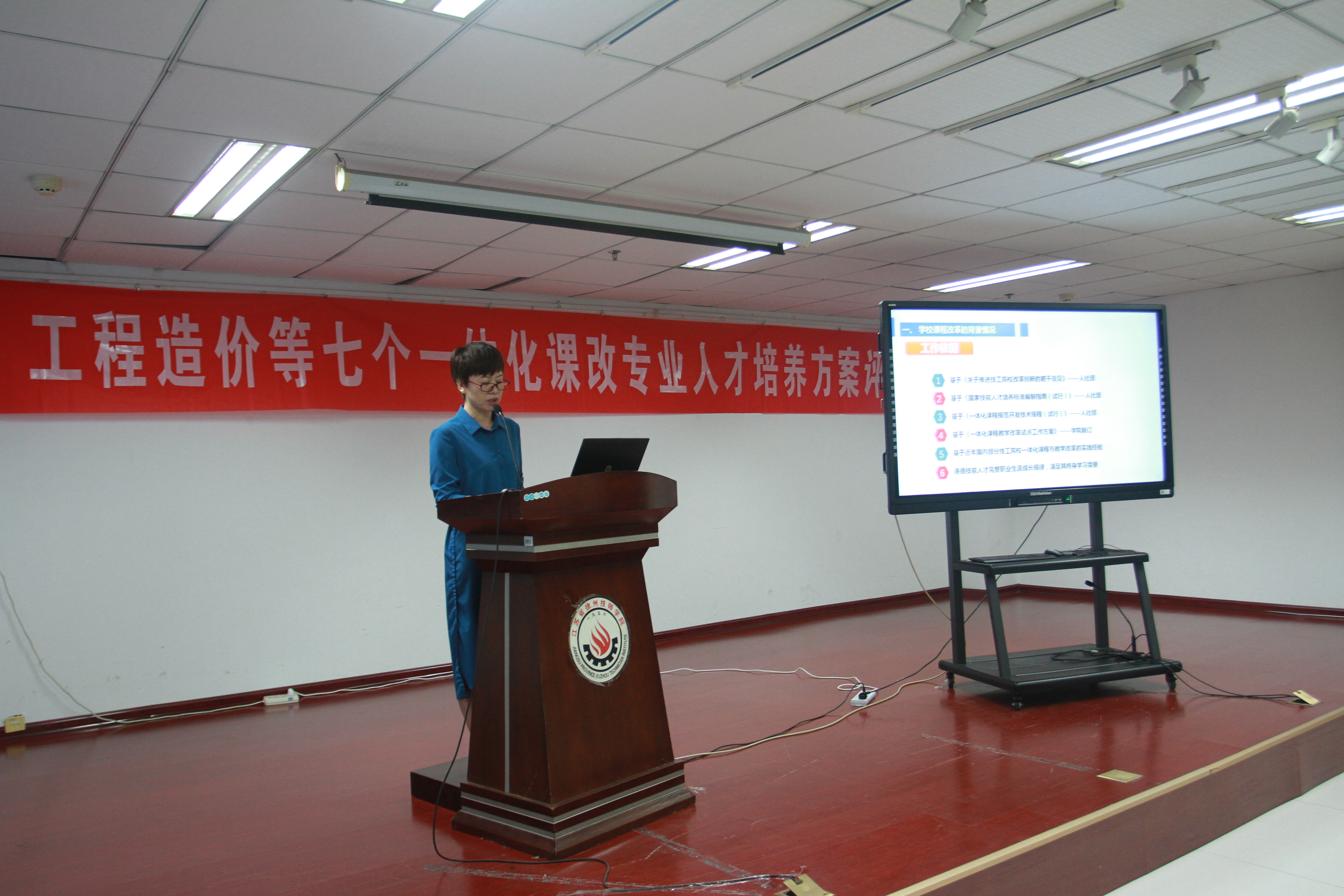 教务处副处长张建玲汇报了我校一体化课程教学改革人才培养方案总体开发成果,王龙洋、宋敏分别作工程造价和烹饪一体化课改成果总结。