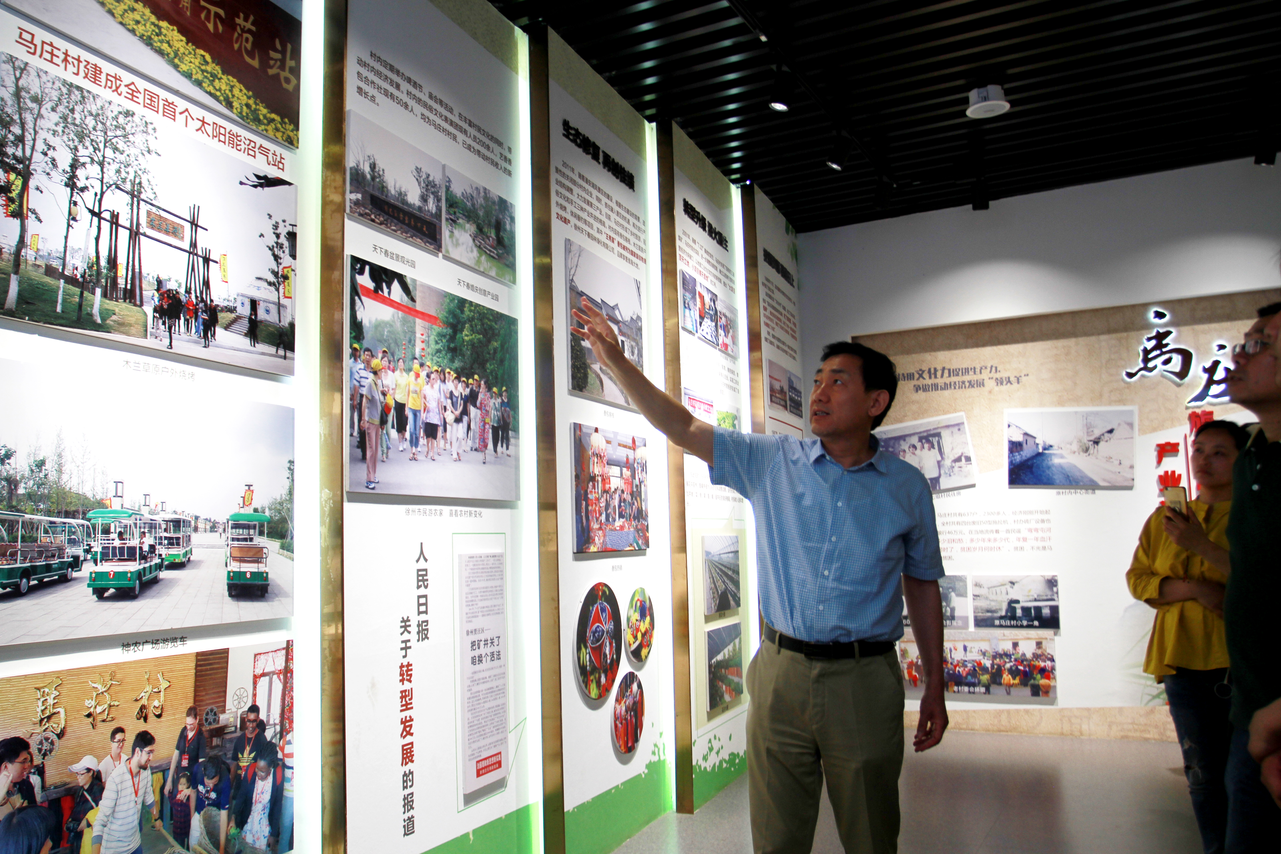 大家一路跟随讲解员来到文化礼堂,观看了习近平总书记视察马庄的视频、焦点访谈马庄专题,走进马庄村村史馆、支部党员活动室,了解马庄村的历史变迁、精神文明建设及基层党建等工作开展情况。随后来到王秀英香包工作室、网络化服务管理中心、综合服务室,探访了“乐团、香包、婆媳好”的“马庄三宝”,领略了“一马当先的勇气、跃马扬鞭的速度、马不停蹄的毅力、马到成功的效率”的马庄精神,感受了马庄从一个偏僻普通的村庄,经过几代人的奋斗,走出了一条“文化立村、文化强村”的新路子,昔日采煤塌陷地的旧景象难觅踪影,百姓富、环境美、管理佳、民风淳的社会主义新农村跃然眼前。