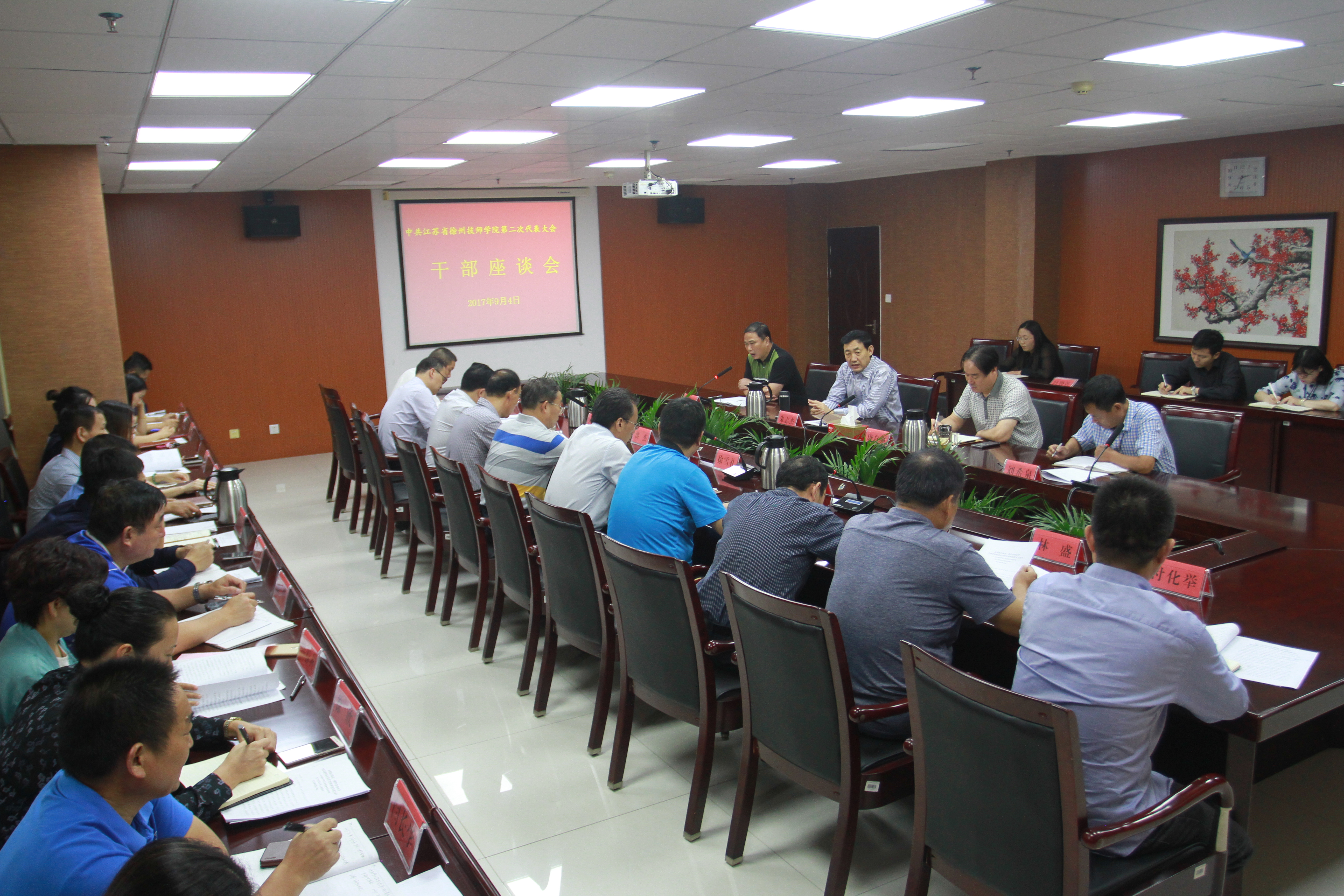 9月4日下午,我校举行中共江苏省徐州技师学院第二次代表大会干部座谈会,共议党代会党委工作报告,共谋学校发展规划。党委书记朱志杰、院长唐自强、党委副书记胡恒庆、副院长刘希泉出席座谈会,全校中层正职干部与会。胡恒庆副书记主持会议。