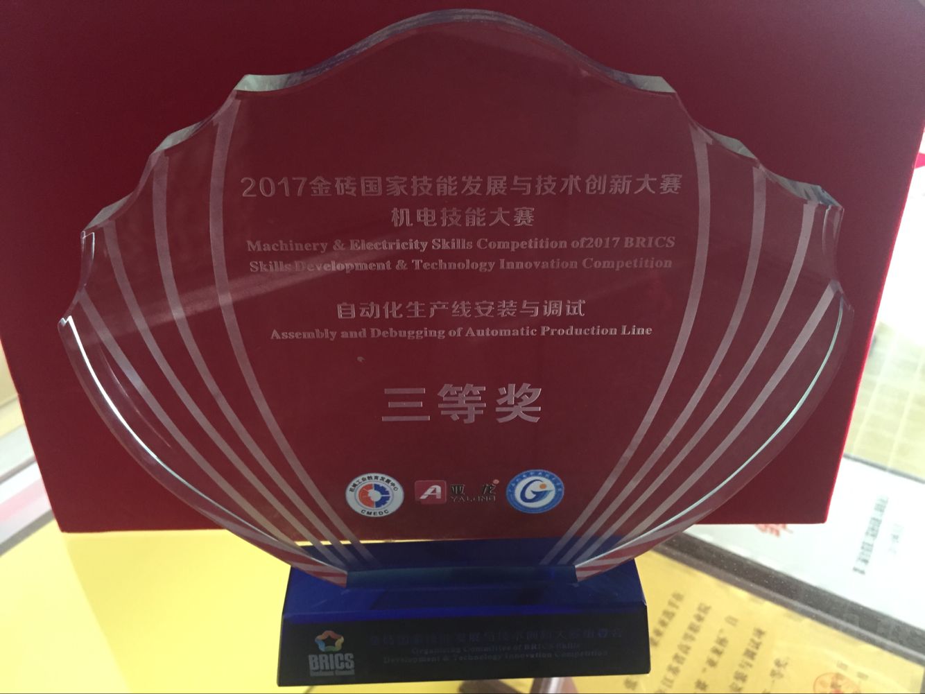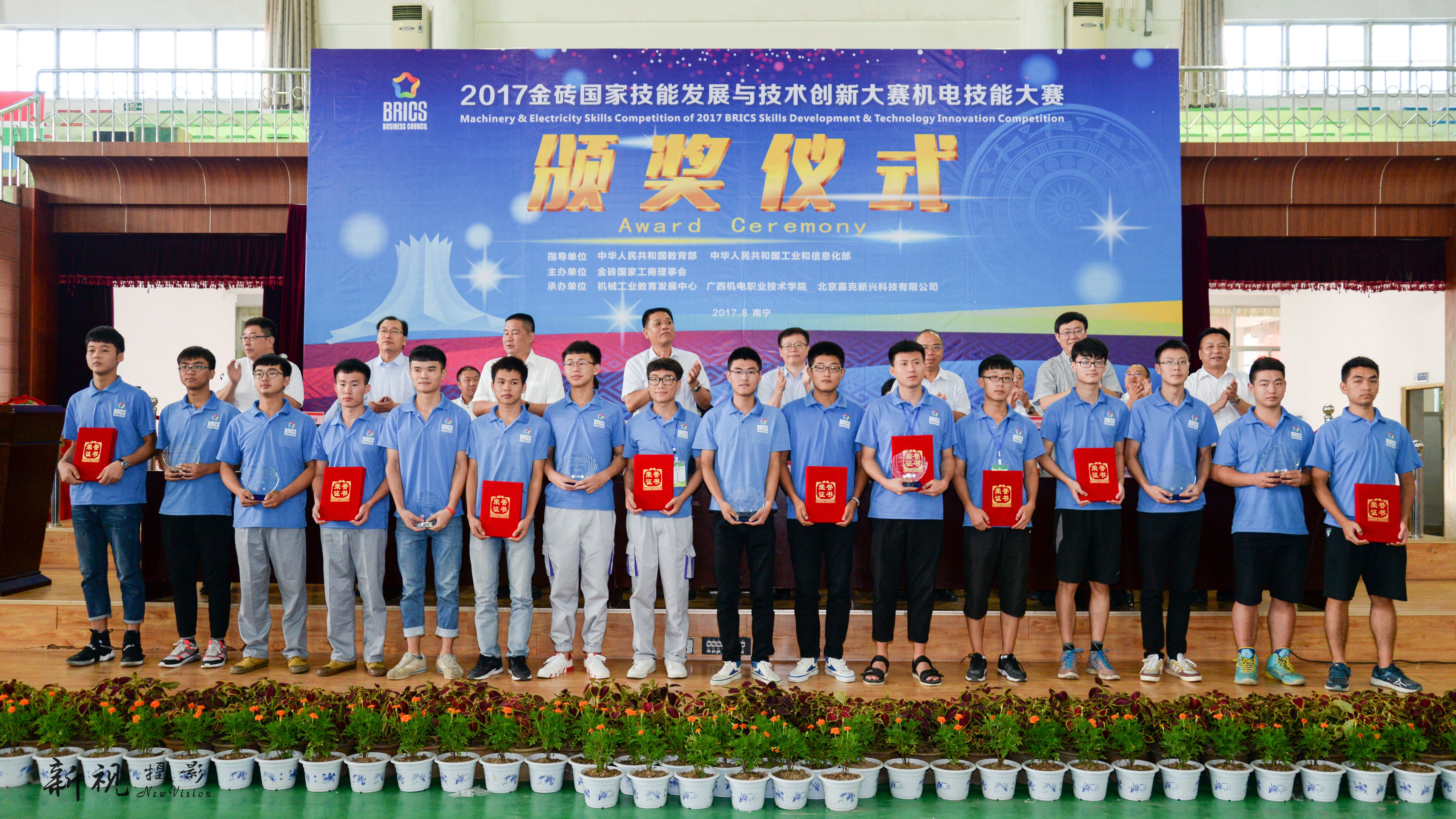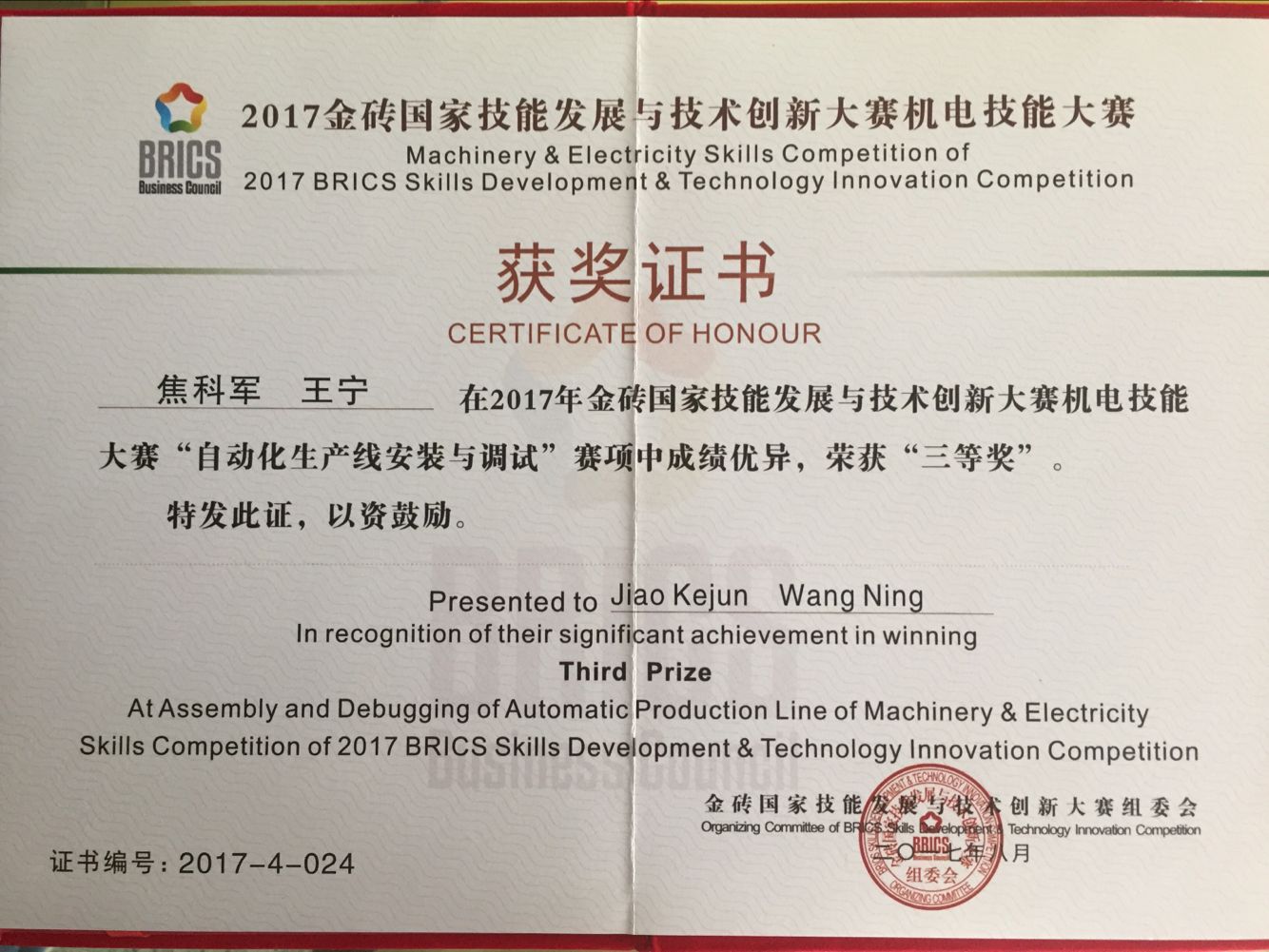 8月20日,首届“金砖国家技能发展与技术创新大赛”机电技能大赛在广西机电职业技术学院举行,金砖五国国际观摩团到现场观摩了比赛。我校焦科军、王宁同学与来自全国55所职业院校,74支代表队的288名选手同台竞技,最终获得“自动化生产线安装与调试”赛项三等奖。