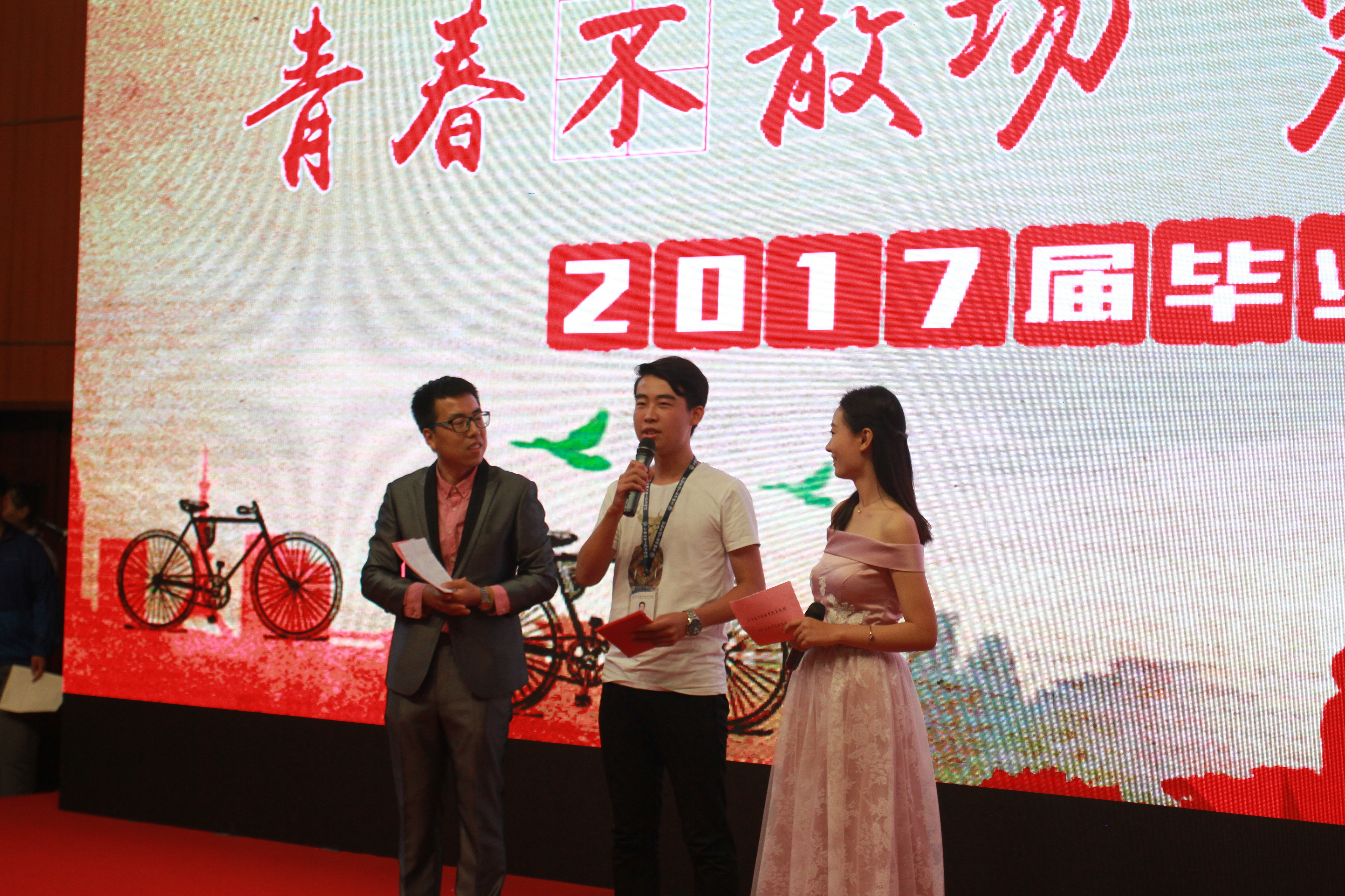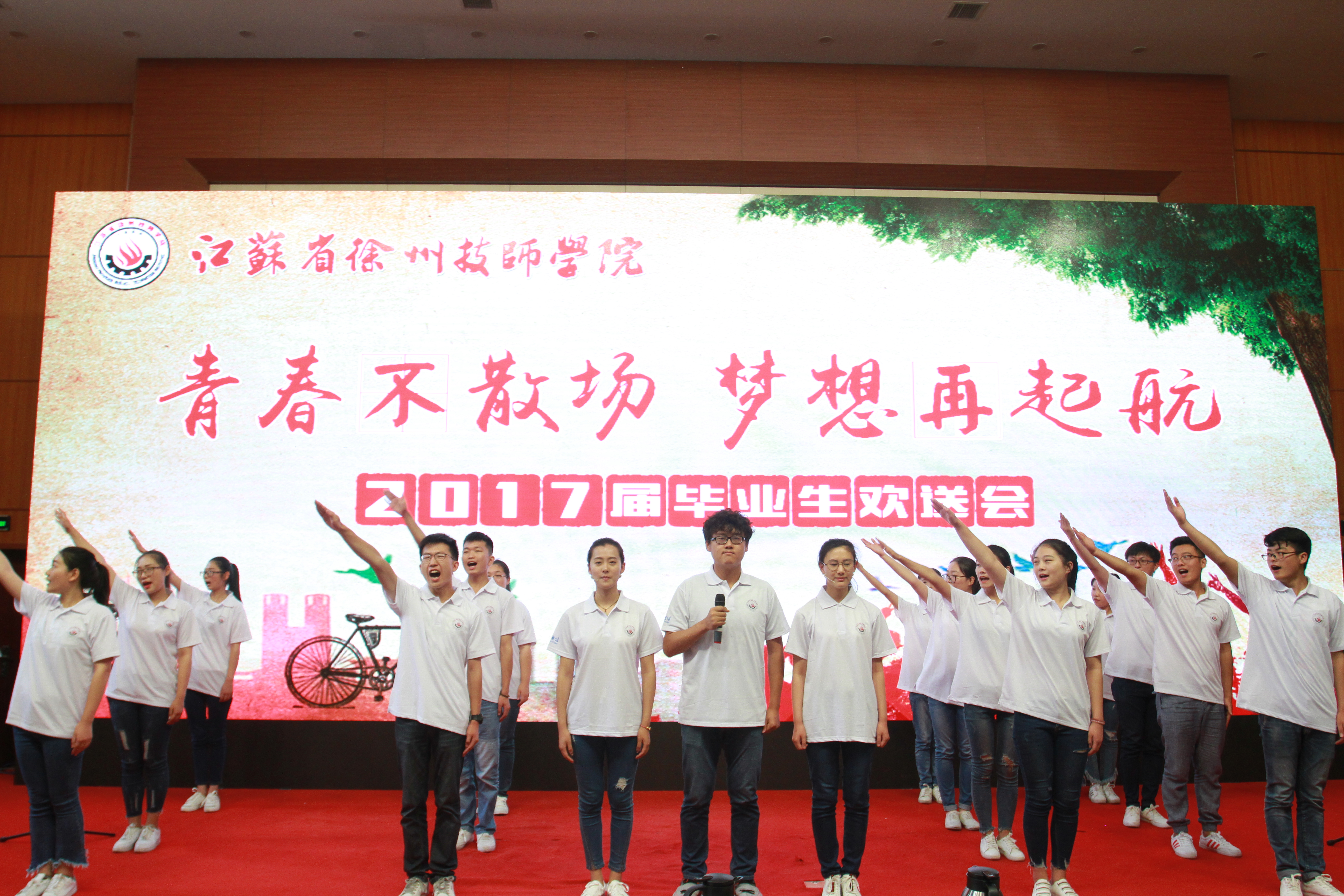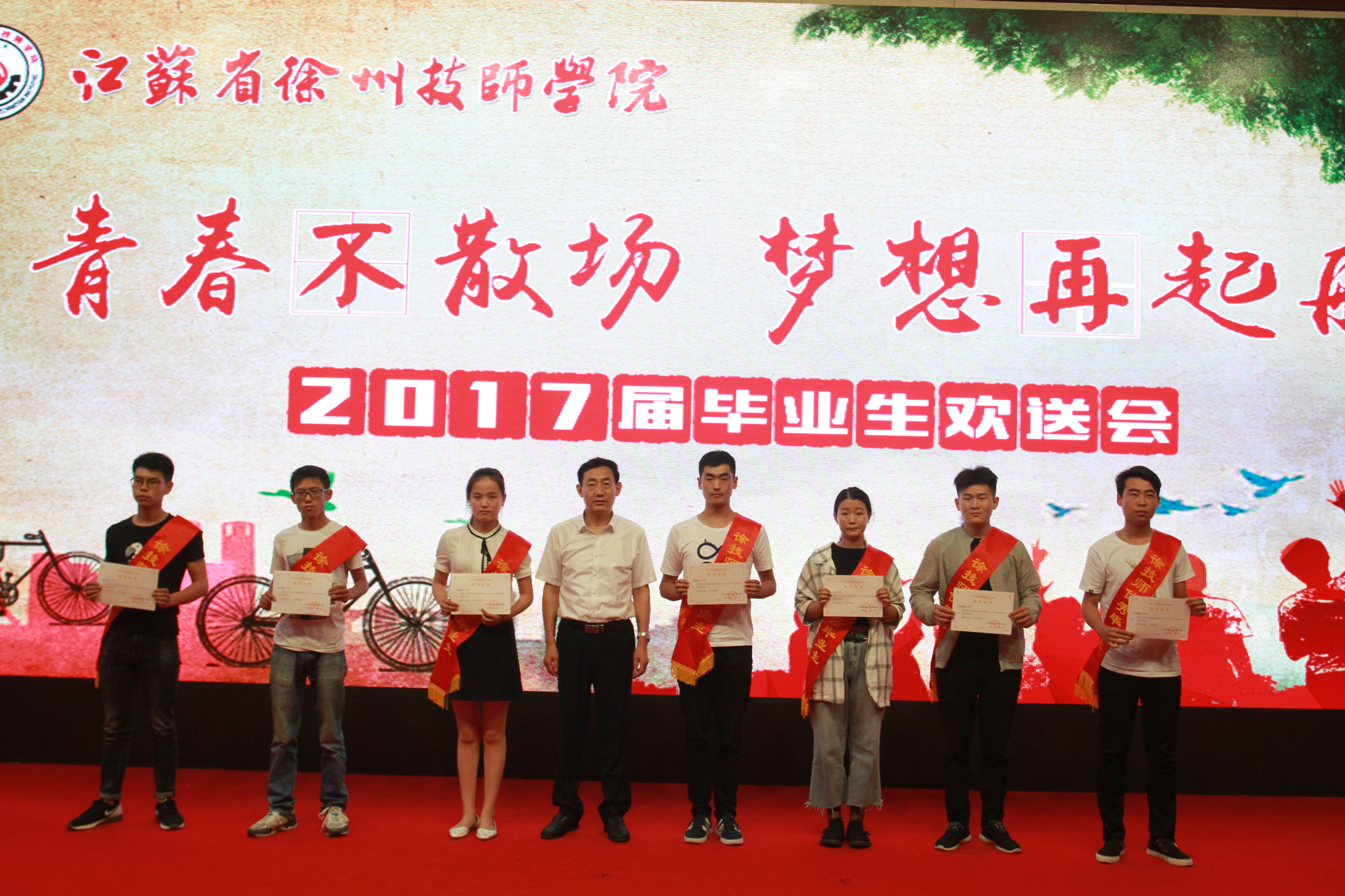 欢送会在一曲曲脍炙人口的校园民谣中拉开帷幕。整场晚会共分为朝花夕拾、感恩祝福、放飞青春三个篇章。歌曲《你最珍贵》诠释了同学间、师生间的珍贵情谊;相声《致青春》在给同学们带来欢笑的同时,更使大家永远铭记在母校挥洒青春的美好时光;歌曲《成都》抒发了对校园生活的恋恋不舍。在《青春不下课 梦想不毕业》教师寄语环节,唐建成老师用自己的亲生经历勉励大家“技校生一样可以成为大国工匠”。《老师,我总是想起你》在浑厚的男中音的演绎下,感动穿越时空,令人洒泪;萨克斯独奏《回家》娓娓道来,感人肺腑;街舞表演《激扬的青春》将全场气氛推向高潮,舞出了校园生活的丰富多彩;配乐诗朗诵《青春的使命》抑扬顿挫,感情真挚。活动在歌曲《二十年后再相会》的约定中,圆满落下帷幕。