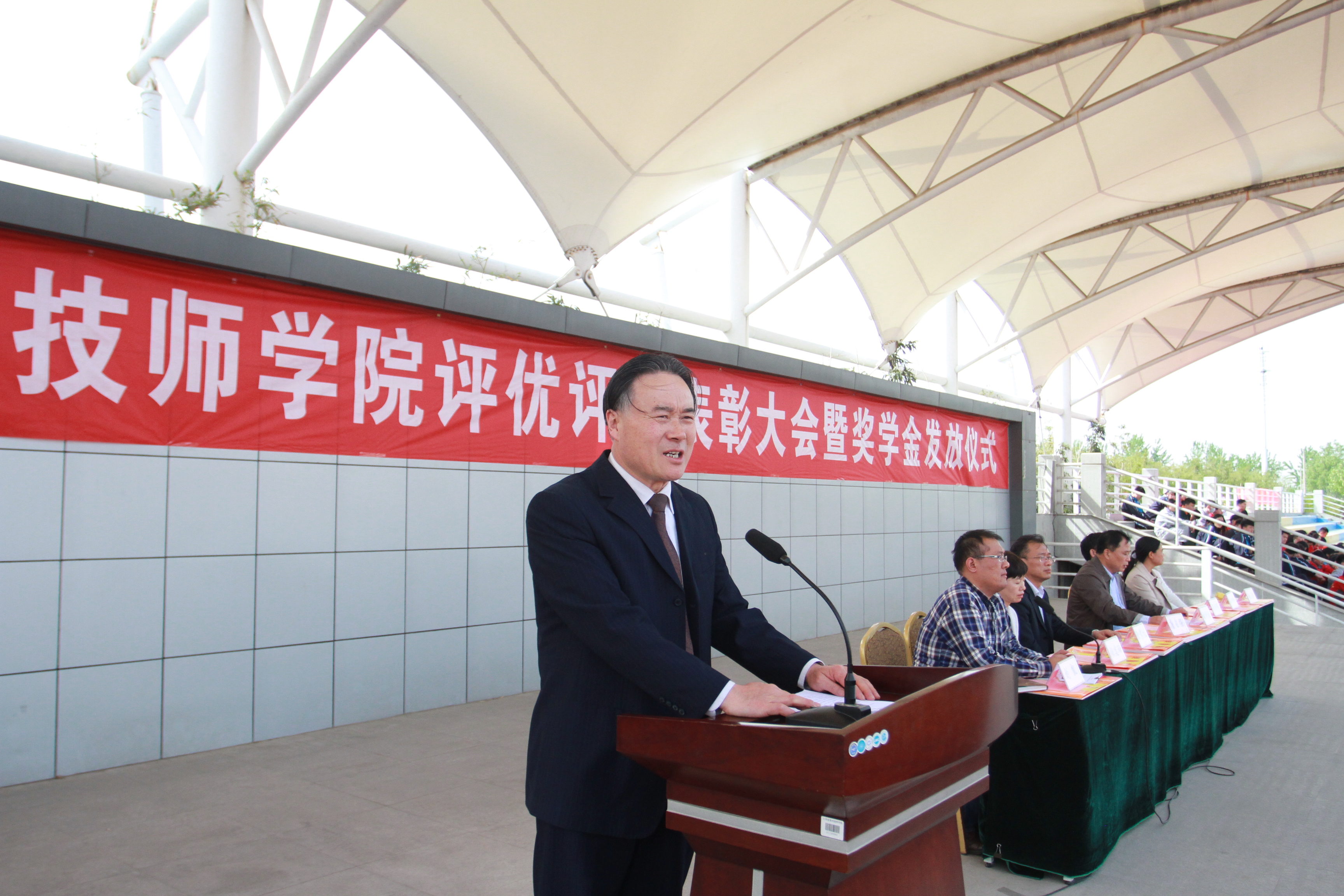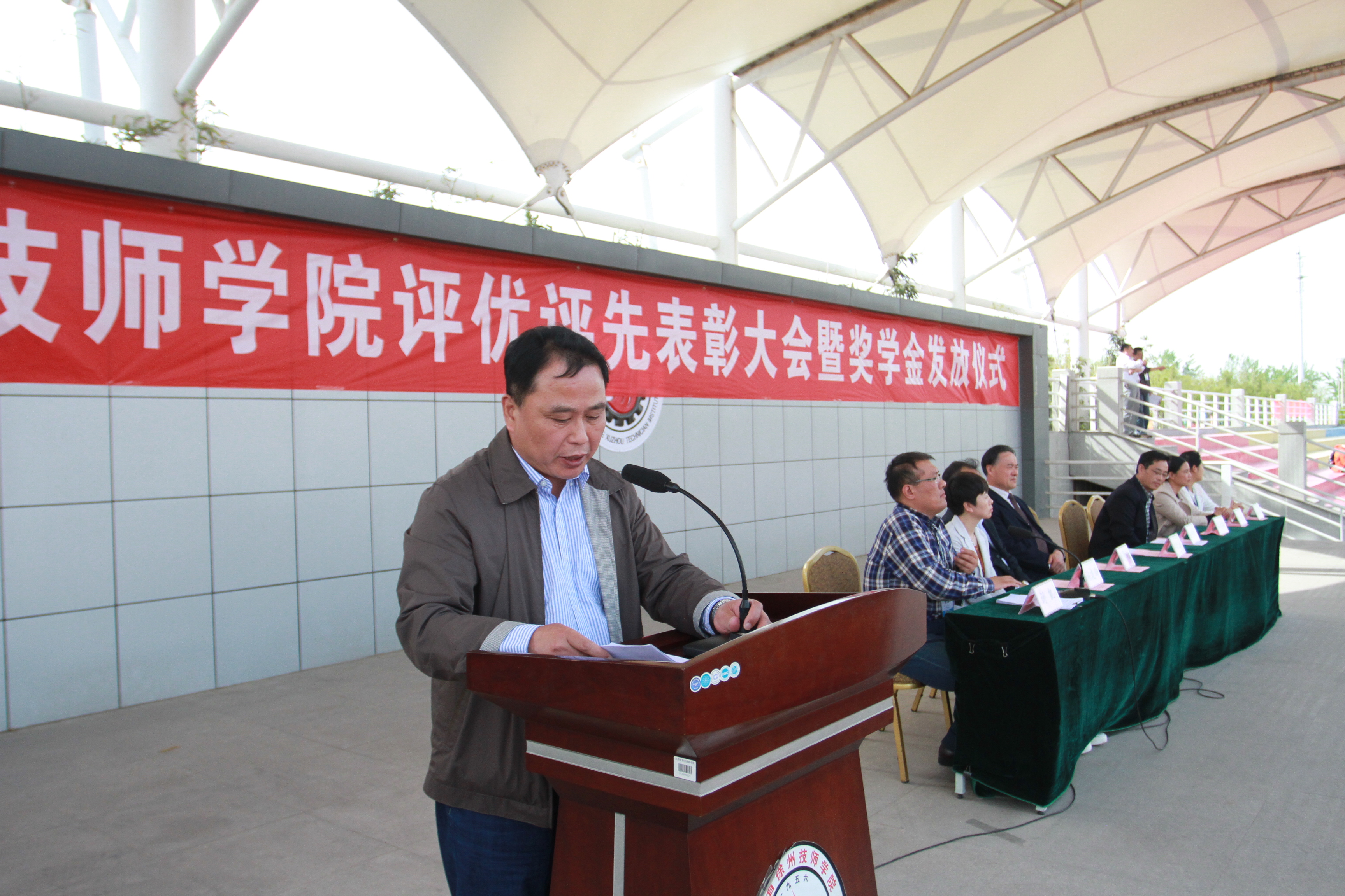 4月19日下午,我校在田径运动场举行2016-2017学年第一学期评优评先表彰大会暨奖学金发放仪式。副院长唐自强、胡恒庆出席活动,教务处、学生工作处主要负责人,各二级学院(部)学管干部、班主任和全校学生参加活动。