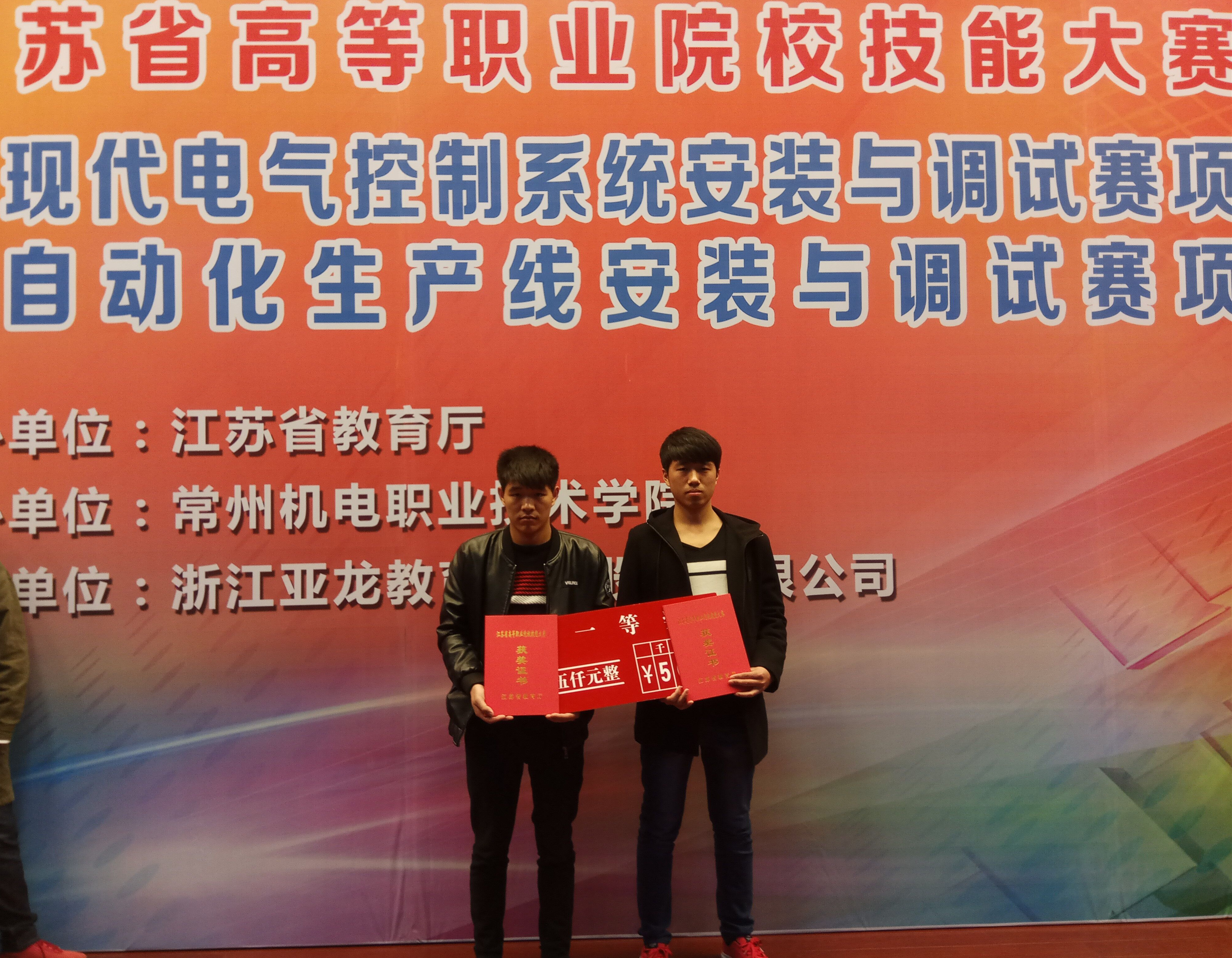 3月12日,从2017年江苏省高等职业院校技能大赛赛场传来喜讯,由我校孟庆龙老师指导的朱存孝、张雪岩,刘伟老师指导的邵伟、吴超凡双双在学生组“自动化生产线安装与调试”和“现代电气控制系统安装与调试”赛项中获得一等奖。