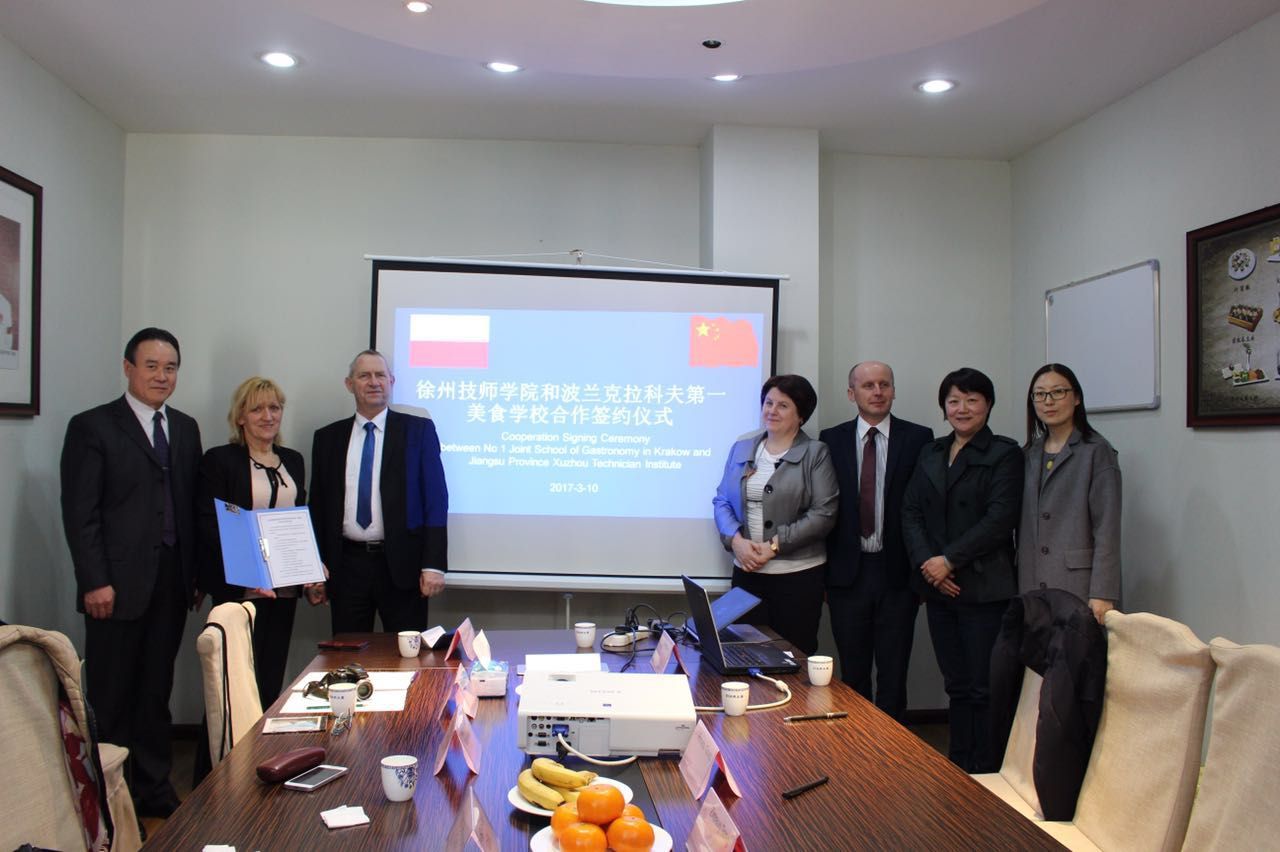 3月10日上午,徐州市外事办欧非处长张志群、欧亚商业教育基金会主席Galik先生、波兰克拉科夫通讯技术学校副校长Golab女士、克拉科夫第一美食学校Matsik女士等一行六人来我校洽谈合作事宜,并签订合作协议,副院长唐自强出席活动。