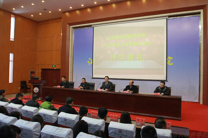 3月8日下午,我校2017级新生开学典礼在报告厅成功召开。唐自强副院长、中国矿业大学职业与继续教育部周智仁部长、徐州工程学院继续教育学院张本业院长、江苏建筑职业技术学院继续教育学院粱晓弘副院长以及相关处室和二级院部的主要领导出席了会议,2017级成人高等教育新生代表及相关班主任近300人参加会议。会议由继续教育学院院长付化举主持。