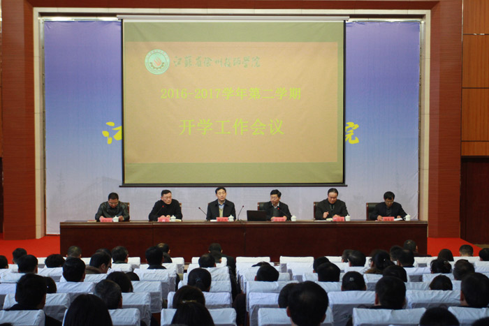 2月19日上午,我校2016—2017学年第二学期开学工作会议在报告厅召开。校领导班子全体成员出席,全校副科及以上干部、副高及以上职称教师与会,党委副书记、纪委书记江浩主持会议。