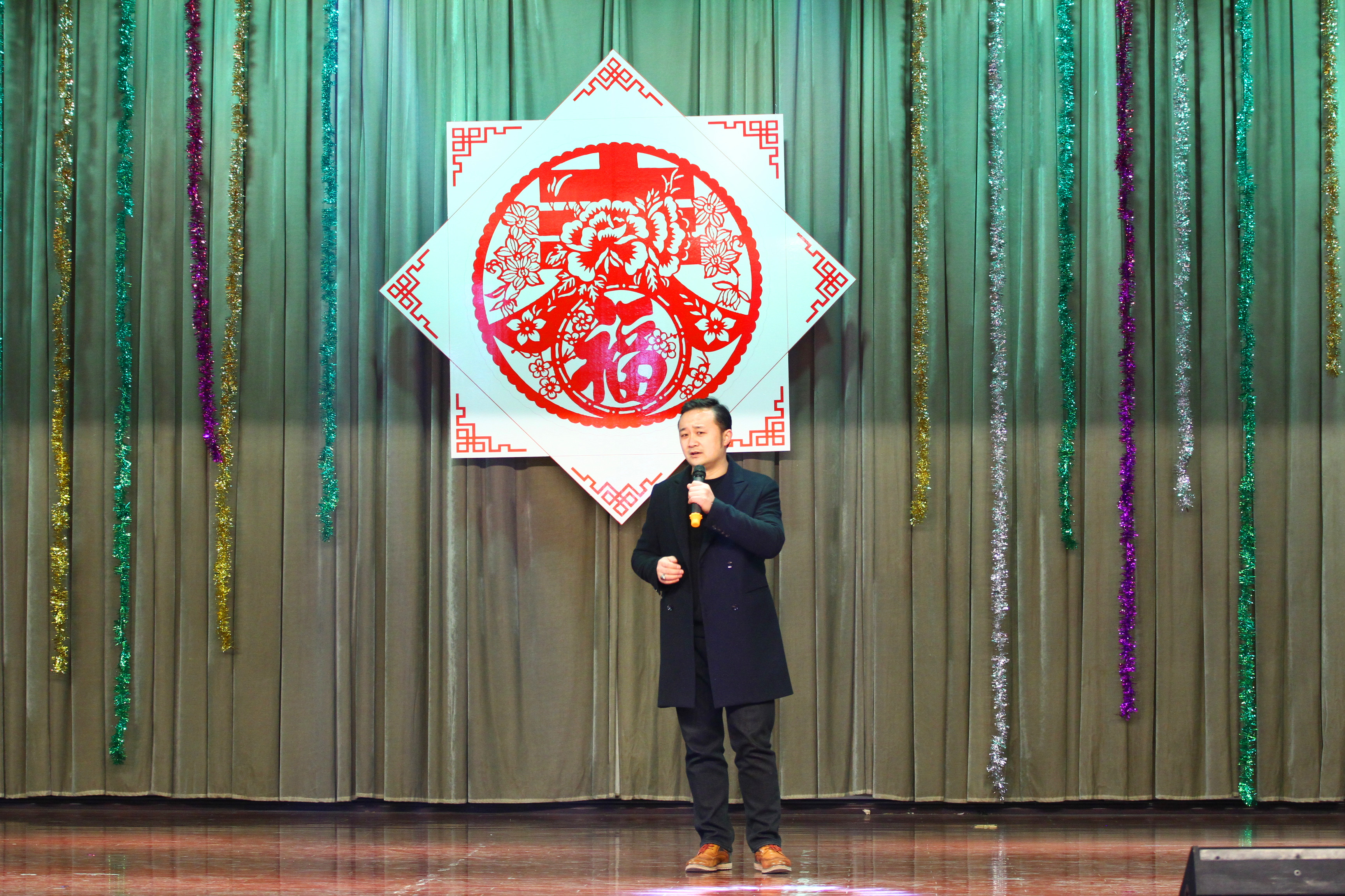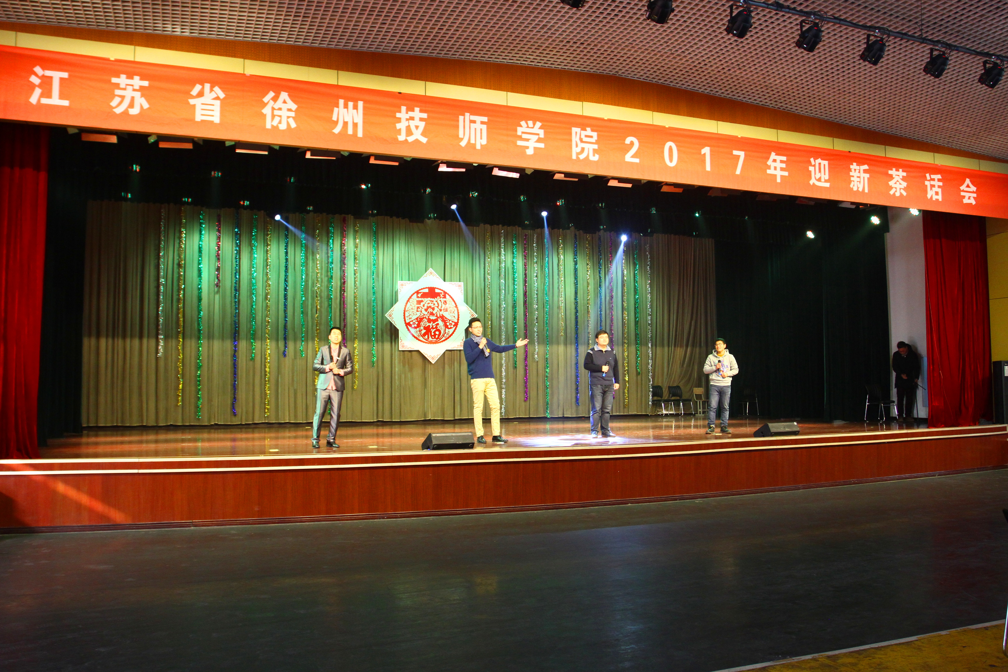 金猴留恋丰收年,彩凤欢啼盛世春。1月12日上午,我校2017年迎新茶话会在大学生活动中心举行。学校班子全体成员与教职工欢聚一堂,载歌载舞,共迎新春。沈士德院长主持茶话会。