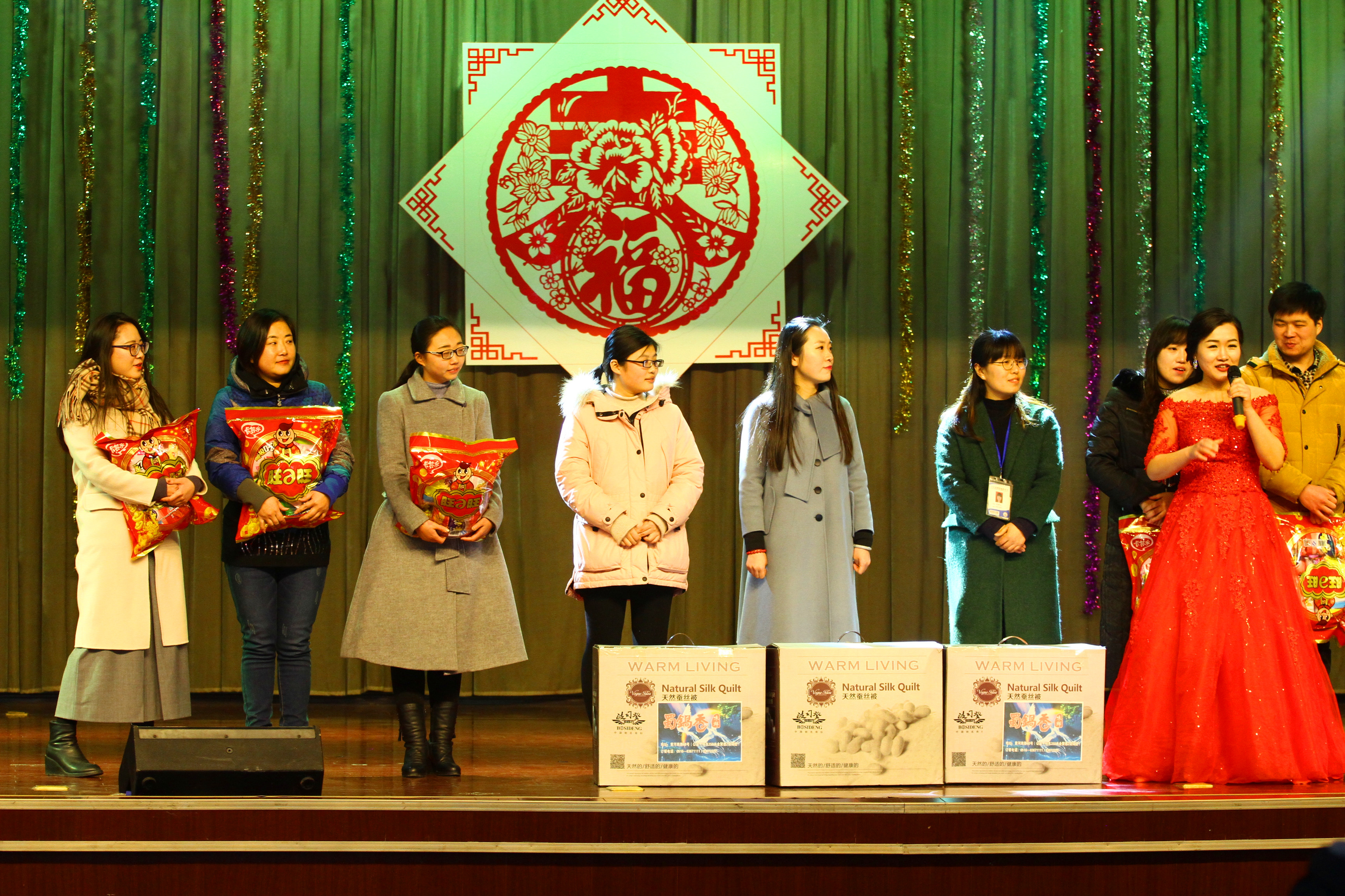 教学评优赛优秀教师代表陈青老师发言后,老师们纷纷登台展示才艺,歌曲联唱、互动游戏、乐器演奏等一个个精心编排的节目异彩纷呈。教职工们在悠扬的歌声中,在欢愉热烈的氛围中共迎2017年新春的到来。