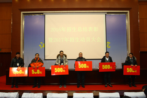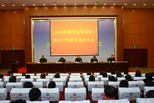 12月29日下午,我校在报告厅召开2016年招生总结表彰暨2017年招生动员大会。校党委班子全体成员出席会议,副科级以上干部、二级学院教师代表及受表彰人员与会。会议由唐自强副院长主持。