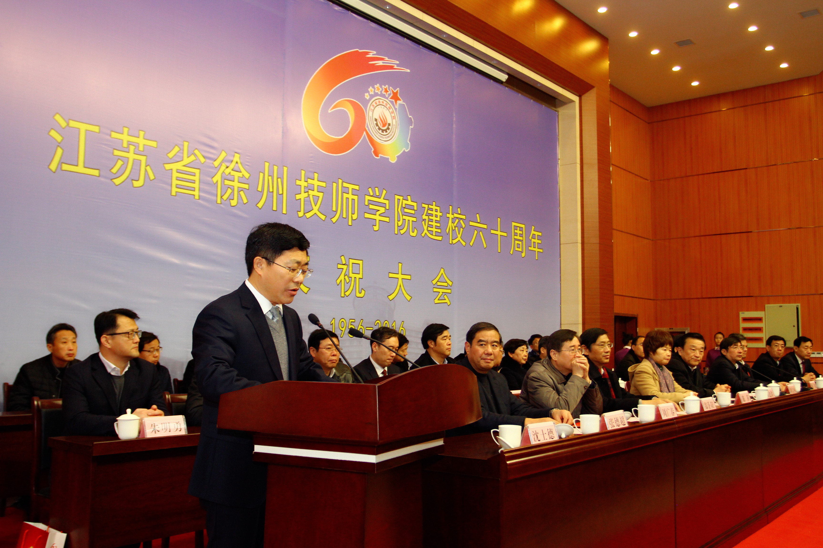 周宝纯副市长代表徐州市政府向我校60华诞表示祝贺。他指出,徐州技师学院经过60年的传承发展,已经形成“厚德 强技 勤奋 创新”的优良校风,成为“师资完备齐整、学生进取向上、环境整洁优美、管理井然有序”的职教典范。60年来,学校向社会输送了近20万各行各业急需的技术技能人才,为我国的现代化建设培养了大批优秀的建设者和接班人,为我市经济建设、科技进步和社会发展做出了积极贡献。他希望,徐州技师学院坚持以“一中心一基地一高地”为立足点,以立德树人为根本,以促进就业创业为导向,主动适应经济社会转型发展的特征,主动回应产业结构优化升级的现实需要,加快实现人才引领产业、产业集聚人才的良性发展,加快构建“产教融合、高效灵活、开放包容”的现代职业教育体系。期待在市委市政府的正确领导下,在全校师生共同努力下,一个“更美、更高、更强”的徐州技师学院,早日屹立在徐淮大地;一批“更尖、更专、更优”的技能英才,早日投身徐州跨越发展的主战场。