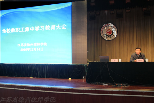 12月14日下午,全校教职工在学生活动中心开展集中学习教育活动。党委书记朱志杰、党委副书记江浩、副院长胡恒庆、刘希泉出席学习活动。江浩副书记主持会议。