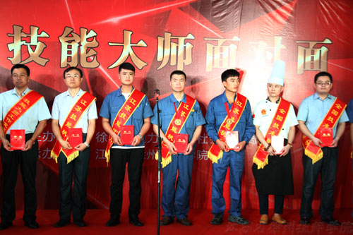 由徐州市人力资源和社会保障局主办,江苏省徐州技师学院承办的“我与技能大师面对面”活动于7月2日我校综合楼一楼大厅举行。徐州市人力资源和社会保障局副局长李冬梅、我校院长沈士德、徐州市人力资源和社会保障局能力建设处处长路保军出席了活动,我市各行业的技能大师工作室领班人、省技能状元、技术能手应邀来校与师生进行了互动。