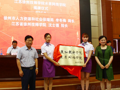 李冬梅局长和沈士德院长为“江苏省徐州技师学院未来网络学院” 揭牌