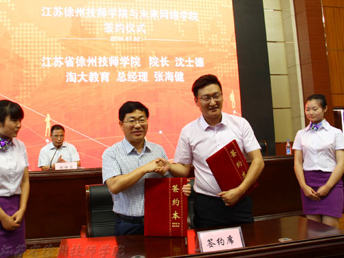据悉江苏省徐州技师学院未来网络学院由江苏省徐州技师学院与淘大教育联合发起成立,立足学校、企业和社会办学机构三方联动,致力于培养实战型互联网高端人才。学生入学前直接与企业签订用工协议和就业保障协议,在校期间不仅接受学校正常的学历教育,还将接受淘大教育的实务技能教学、沙盘演练和项目外包型学习。也就是说,学生不仅拥有与普通学生一样的专业基础和通用技能,还将通过大量针对性训练实践形成一些实战技巧,成为高素质的实战型人才,既能迅速适应企业岗位需要,也能够直接参与创业。这种新型培养模式,最大限度地消除了学生从学校到企业的“技能鸿沟”,让学生放心、企业省心、家长安心、学生开心,具有非常广阔的市场前景。