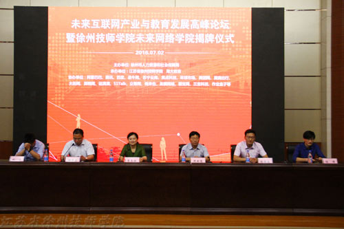 7月2日上午,互联网产业与教育发展高峰论坛暨江苏省徐州技师学院未来网络学院揭牌仪式在我校学术报告厅举行。徐州市人力资源和社会保障局副局长李冬梅、淘大集团张海健经理、腾讯公司深圳运营总监程伟、途牛旅游网运营总监姚波出席活动,我校院长沈士德、副院长胡恒庆以及相关部门负责人参加活动。