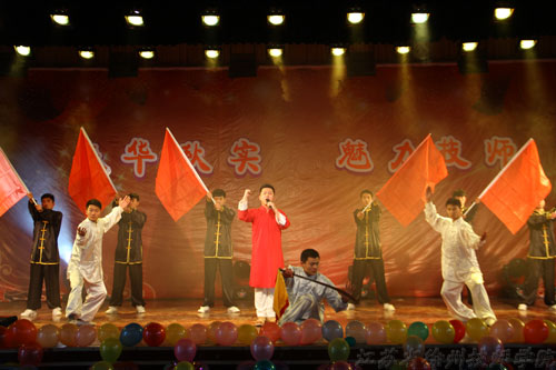 随后,演出正式开始。开场舞《红红火火闹新年》欢快热闹,优美的舞姿烘托出新年的喜庆气氛;一首深情款款的歌曲《中国人》寄托了技师人对祖国母亲的深切问候;舞蹈《Trip》激情四射、动感十足,向观众展示了技师学子青春的活力与奋进的激情;小品《如此行善》啼笑皆非的故事情节,引得观众捧腹大笑;机械舞《上帝之手》风格酷炫,过目难忘;民乐合奏《赛马》、《欢沁》的丝竹之韵,沁人心脾;陈氏太极社团和精武门武术社团表演的中国功夫《精忠报国》可谓一大亮点,令人叹为观止,台下观众情不自禁起身欢呼,现场一片沸腾。相声《朋友论》、歌舞《小苹果》……充满新意的节目精彩纷呈,掀起了晚会一阵又一阵的高潮。