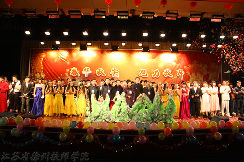 在歌舞《欢天喜地》的欢快旋律中,徐州技师学院2015年新年联欢会圆满结束。回望2014,学院工作硕果累累;展望2015,我们踌躇满志、豪情满怀,新的一年,技师人必将奏响更加多彩的乐章!