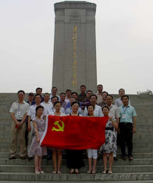 活动仪式上,20余名党员站在淮海战役烈士纪念塔前,面对鲜红的党旗,重温入党誓词,重温党的光荣历史,以牢记党的宗旨使命,感悟中国共产党90年的光辉历程,加深对党的性质、宗旨和荣辱观的认识。