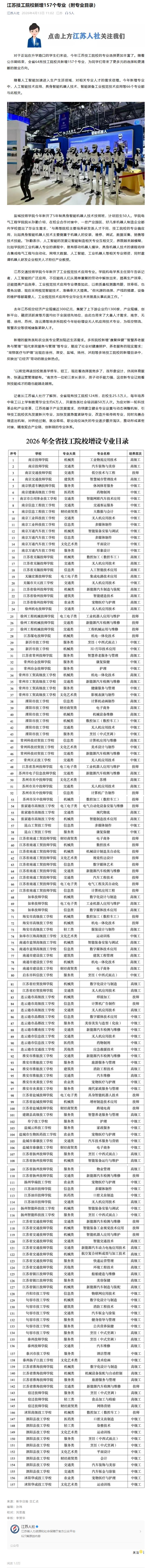 江苏技工院校新增157个专业(附专业目录)