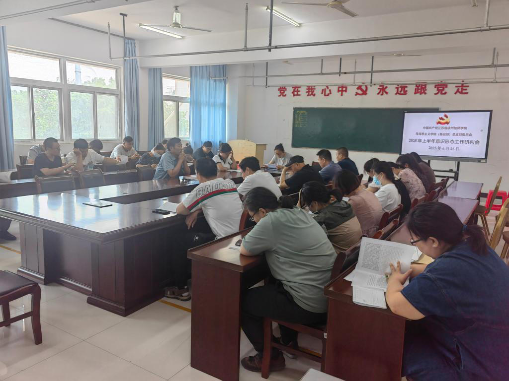6月25日,我院在综合楼208会议室召开2025年上半年意识形态工作分析研判会。党总支领导班子成员出席会议,党总支书记麻莉主持会议并讲话,全体党员参加会议。